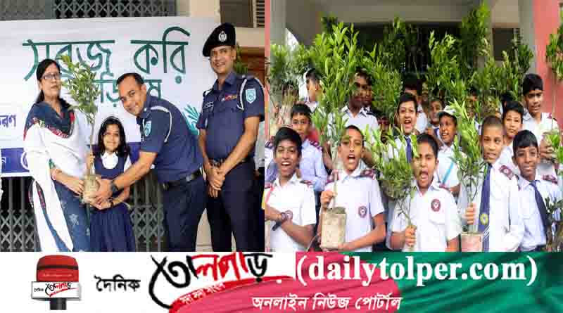 সবুজ করি কুড়িগ্রাম,এই প্রতিপাদ্যে কোমলমতি শিক্ষার্থীদের মাঝে গাছের চারা বিতরণ করেছে জেলা পুলিশ।