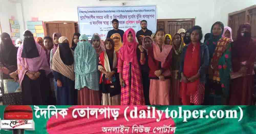 কুড়িগ্রামে দ্বিতীয় পর্যায়ে দুযোর্গকালীন সময়ে নারী ও কিশোরীদের দুর্যোগ ঝুঁকি ব্যবস্থাপনা ও মানসিক স্বাস্থ্য সেবা বিষয়ক প্রশিক্ষণ অনুষ্ঠিত হয়েছে।