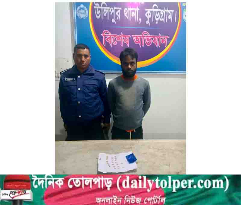 জানা গেছে, গত শুক্রবার গভীর রাতে গোপন সংবাদের ভিত্তিতে কুড়িগ্রাম ক্যাম্প কমান্ডারের নেতৃত্বে সেনাবাহিনী ও পুলিশের যৌথ অভিযানে ধামশ্রণী ইউনিয়নের পোদ্দারপাড়া গ্রামের নিজ বাড়ি থেকে ৩২ পিস ইয়াবা ও ছয় গ্রাম হিরোইনসহ তাকে হাতেনাতে আটক করা হয়। পরে আটককৃত আসামিকে উলিপুর থানায় সোপর্দ করা হয়।