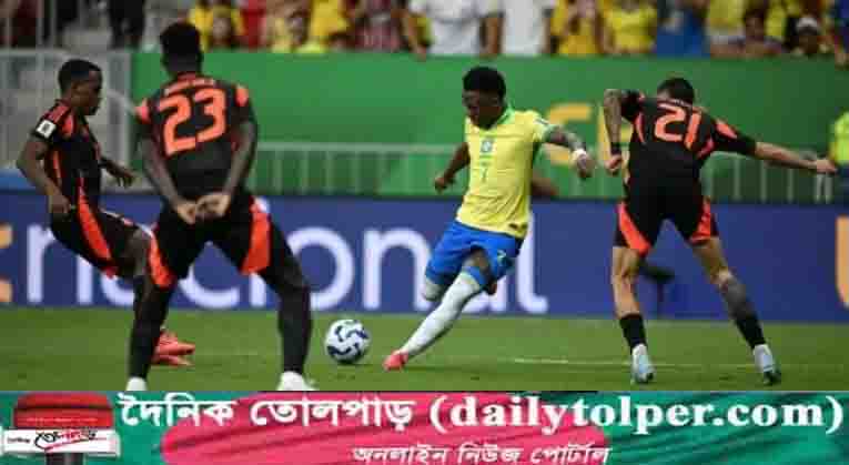 বিশ্বকাপ বাছাইপর্বের গুরুত্বপূর্ণ ম্যাচে কলম্বিয়ার বিপক্ষে রোমাঞ্চকর জয় তুলে নিয়েছে ব্রাজিল। ২০২৬ বিশ্বকাপে সরাসরি জায়গা করে নেওয়ার লড়াইয়ে জয় ছাড়া অন্য কোনো বিকল্প ছিল না সেলেকাওদের সামনে। ম্যাচের ৯৮ মিনিট পর্যন্ত স্কোরলাইন ছিল ১-১ সমতায়। ঠিক সেই সময় নাটকীয় মোড় নেয় খেলা, ৯৯তম মিনিটে ভিনিসিয়াস জুনিয়রের দুর্দান্ত গোলে কষ্টার্জিত তিন পয়েন্ট নিশ্চিত করে ব্রাজিল। -খবর তোলপাড়।