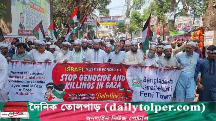 পরে ফিলিস্তিনে শাহাদাত বরণকারীদের আত্মার মাগফিরাত কামনা করে দোয়া করেন জামেয়া রশীদিয়া মাদ্রাসার মুহতামিম মুফতী শহীদুল্লাহ। ফেনী আলিয়া মাদ্রাসা মাঠে গণজমায়েত শেষে একটি বিক্ষোভ মিছিল শহরের বিভিন্ন সড়ক প্রদক্ষিণ করেন।হাজার ছাত্র জনতা এবং বয়স্ক লোকদেরকে ফিলিস্তিনের পতাকা হাতে নিয়ে বিক্ষোভ মিছিলে অংশ গ্রহণ করতে দেখা গেছে।