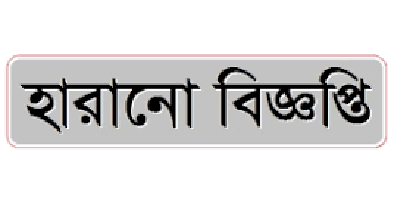 আমার এসএসসি’র প্রবেশপত্র হারিয়েছে। যার রোল নম্বর ০৫০১০২৮২০১৫, সাল ২০০৬, প্রতিষ্ঠানের নাম: মোগলবাসা উচ্চ বিদ্যালয়, বোর্ড: উন্মূক্ত বিশ্ববিদ্যালয়, ঢাকা।
