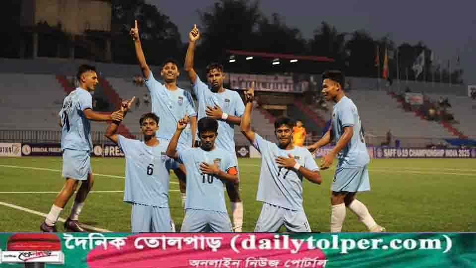 রবিবার (১১ মে) ভারতের উপিয়াতে অনুষ্ঠিত ম্যাচের প্রথমার্ধে ২-০ গোলের লিড নেয় বাংলাদেশ যুবারা। গোল করেন মুরশেদ ও শোরেন। ম্যাচের যোগ করা সময়ে দলের অধিনায়ক গোল করে বড় জয় এনে দেন দলকে। -খবর তোলপাড়।