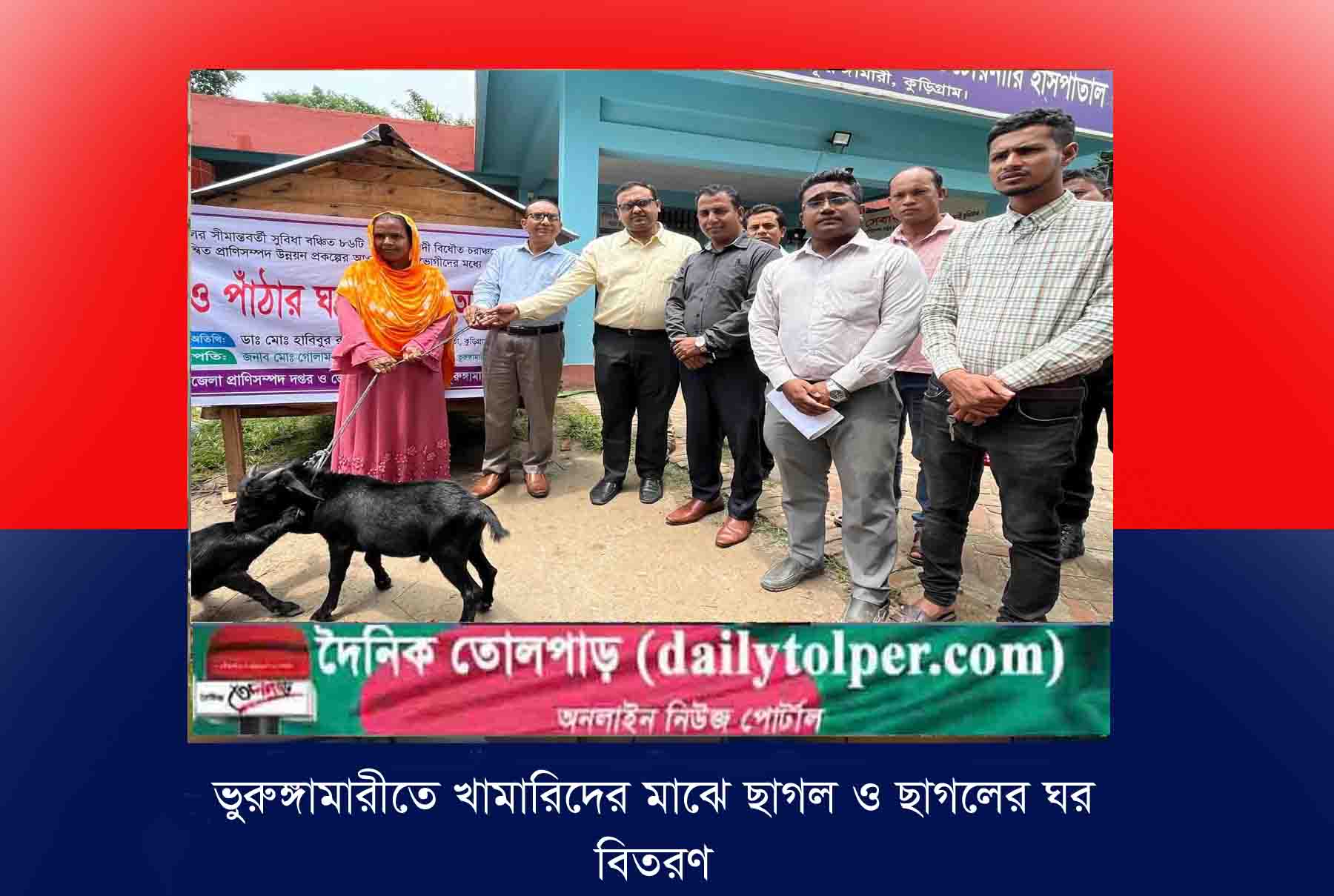 কুড়িগ্রামের ভুরুঙ্গামারীতে উপজেলা প্রাণিসম্পদ দপ্তর ও ভেটেরিনারী হাসপাতাল কর্তৃক দরিদ্র ও সুবিধাবঞ্চিত খামারিদের মাঝে উন্নত জাতের পাঁঠা ছাগল এবং ছাগলের ঘর বিতরণ করা হয়েছে।
