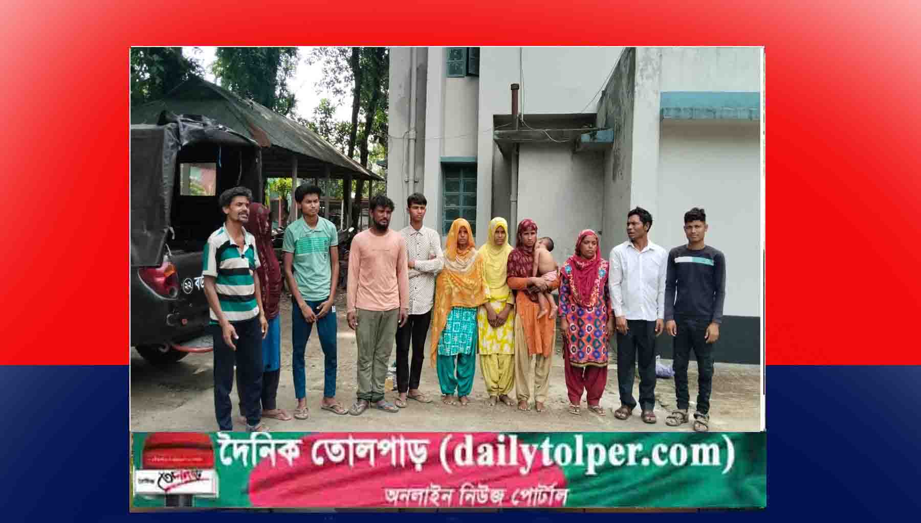আটককৃতরা হলেন আব্দুল মজিদ (৪২), হালালী বেগম (৩৬), হালাল মিয়া (২০). আতাউর রহমান (৩৮), আনোয়ারা বেগম (৩৫), আল আমিন (১৯),আরজিনা খাতুন (১৬),আহসান হাবিব (২৭),গুলেনুর বেগম (৪০), মনিষা বেগম (২০), আবু ব্ক্কর সিদ্দিক (০৯ মাস),এনামূল হক (৪০), মর্জিনা বেগম (৩০), ইদুল হাসান (১৬)। এদের সবার বাড়ি কুড়িগ্রামের ফুলবাড়ি উপজেলায়।