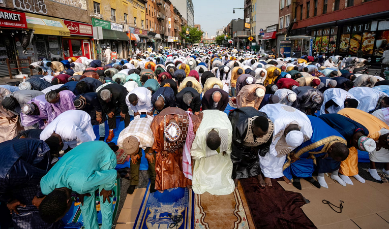যুক্তরাষ্ট্রের নিউইয়র্ক অঙ্গরাজ্যের ব্রুকলিন শহরের মসজিদ আত-তাকওয়া এলাকায় ঈদের জামাত। ৬ জুন ঈদুল আজহা উদযাপন করেছেন মার্কিন মুসলিমরা