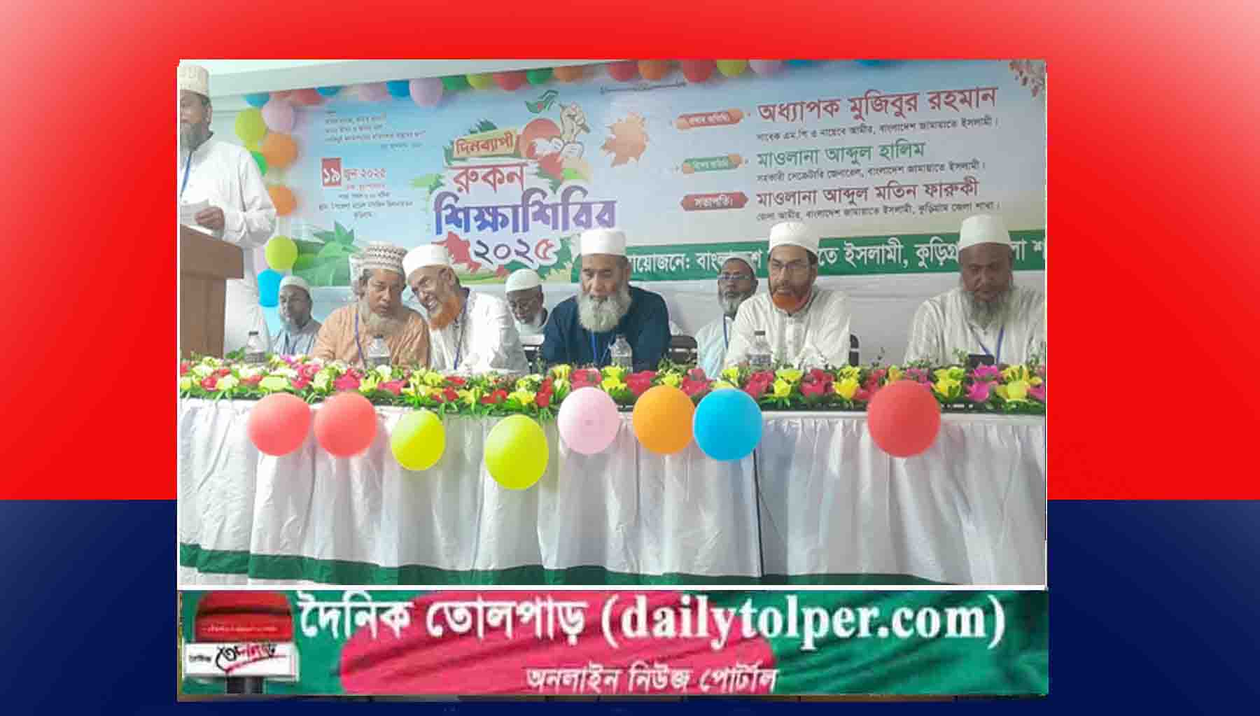 বৃহস্পতিবার(১৯জুন) জেলা জামায়াতের আমীর মাও: আব্দুল মতিন ফারুকীর সভাপতিত্বে জেলা সেক্রেটারী মাও: নিজাম উদ্দিনের পরিচালনায় কুড়িগ্রাম সদর উপজেলা মডেল মসজিদ হল রুমে জেলার সদস্যদের (রুকন) নিয়ে দিনব্যাপী শিক্ষাশিবির অনুষ্ঠিত হয়৷