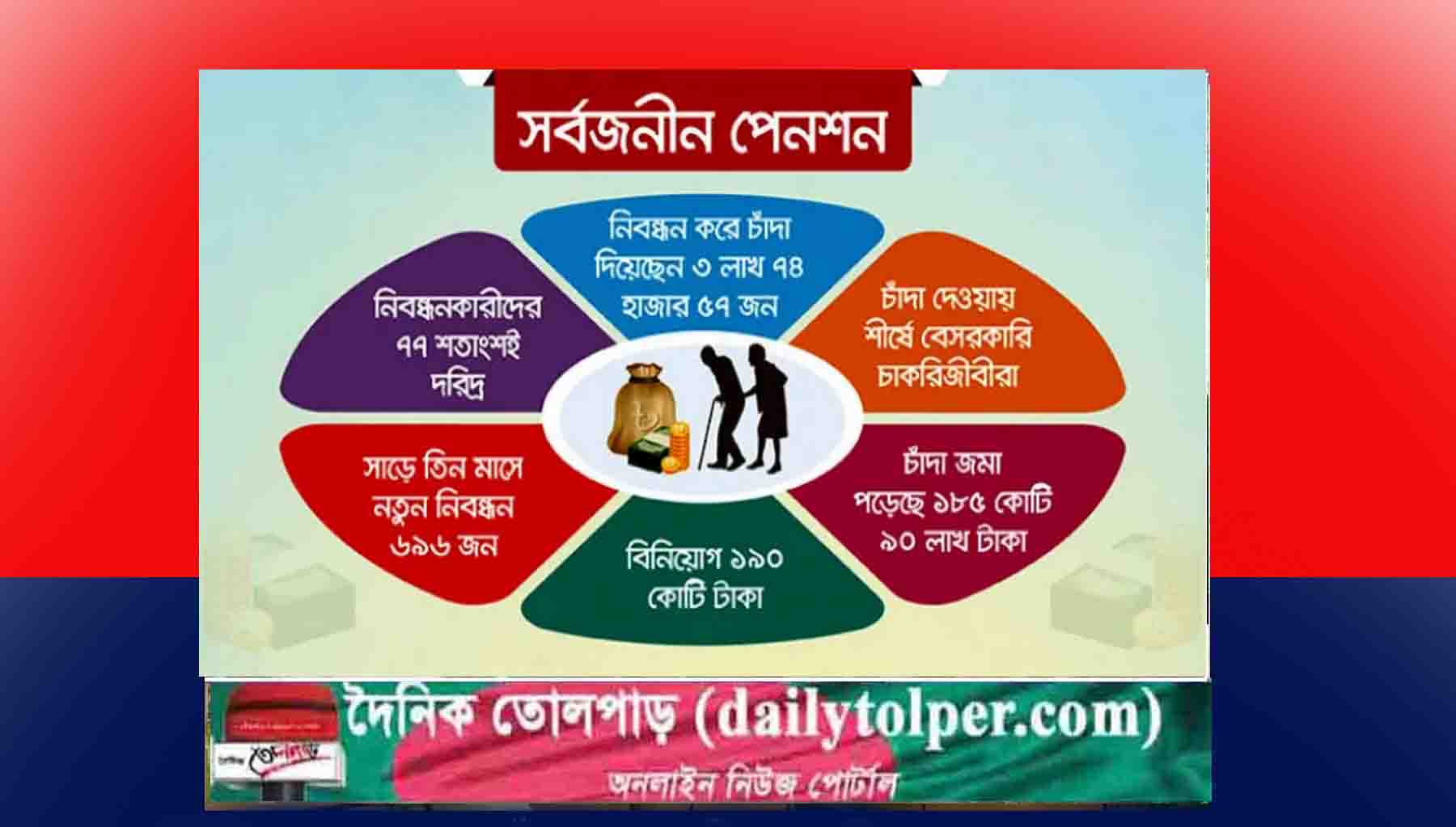 সর্বস্তরের জনগণকে একটি টেকসই ও সুসংগঠিত সামাজিক নিরাপত্তা কাঠামোর আওতায় আনতে সর্বজনীন পেনশন স্কিম চালু করেছে সরকার। শুরুর দিকে এই পেনশন স্কিমে মানুষের ব্যাপক সাড়া পাওয়া গেলেও, এক বছর ধরে তেমন সাড়া পাওয়া যাচ্ছে না। শেষ সাড়ে নয় মাসে মাত্র এক হাজার ৯৬৩ জন নতুন করে নিবন্ধন করেছেন। এ পরিস্থিতিতে নিবন্ধনের গতি বাড়াতে সরকার মেলা, কর্মশালা ও বেসরকারি সংস্থার (এনজিও) মাধ্যমে মাঠে নামছে।-খবর তোলপাড়।
