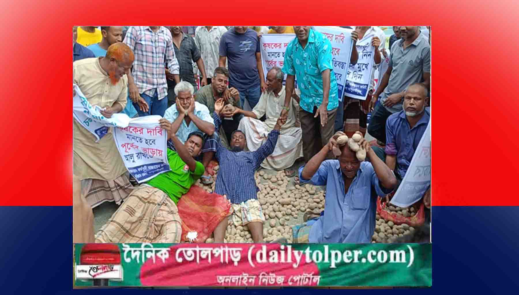 কুড়িগ্রামের হিমাগারে আলু রাখার ভাড়া বৃদ্ধির প্রতিবাদে রাস্তায় আলু ফেলে অবরোধ কর্মসূচী পালন করে আলু চাষী ও ব্যবসায়ীরা।
