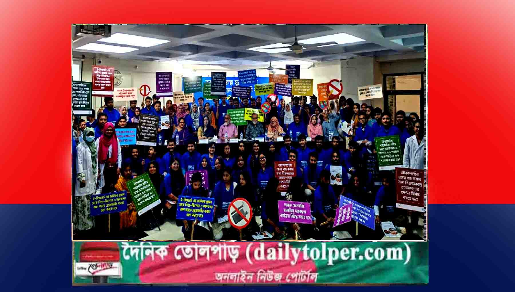 ডেভেলপমেন্ট অর্গানাইজেশন অব দ্য রুরাল পূয়র-ডব়্প এর আয়োজনে, ঢাকা আহছানিয়া মিশন, নারী মৈত্রী এবং ন্যাশনাল হার্ট ফাউন্ডেশন এর অংশগ্রহণে ‘তরুণদের স্বাস্থ্য সুরক্ষার জন্য তামাক নিয়ন্ত্রণ আইন দ্রুত শক্তিশালী করা প্রয়োজন’ শীর্ষক তামাক বিরোধী যুব সমাবেশ বৃহস্পতিবার (১০ জুলাই ২০২৫) ঢাকা বিশ্ববিদ্যালয়ের মুজাফফর আহমেদ চেীধুরী মিলনায়তনে অনুষ্ঠিত হয়েছে। সমাবেশে ঢাকা বিশ্ববিদ্যালয় সাংবাদিক সমিতির সদস্যদের পাশাপাশি ঢাকা বিশ্ববিদ্যালয়, জাহাঙ্গীরনগর বিশ্ববিদ্যালয়, জগন্নাথ বিশ্ববিদ্যালয়, বিইউপি, ঢাকা কলেজ, গভঃ বাংলা কলেজ, খিলগাঁও মডেল কলেজসহ বিভিন্ন শিক্ষা প্রতিষ্ঠানের প্রায় দুই শতাধিক শিক্ষার্থী উপস্থিত ছিলেন। -খবর তোলপাড়।
