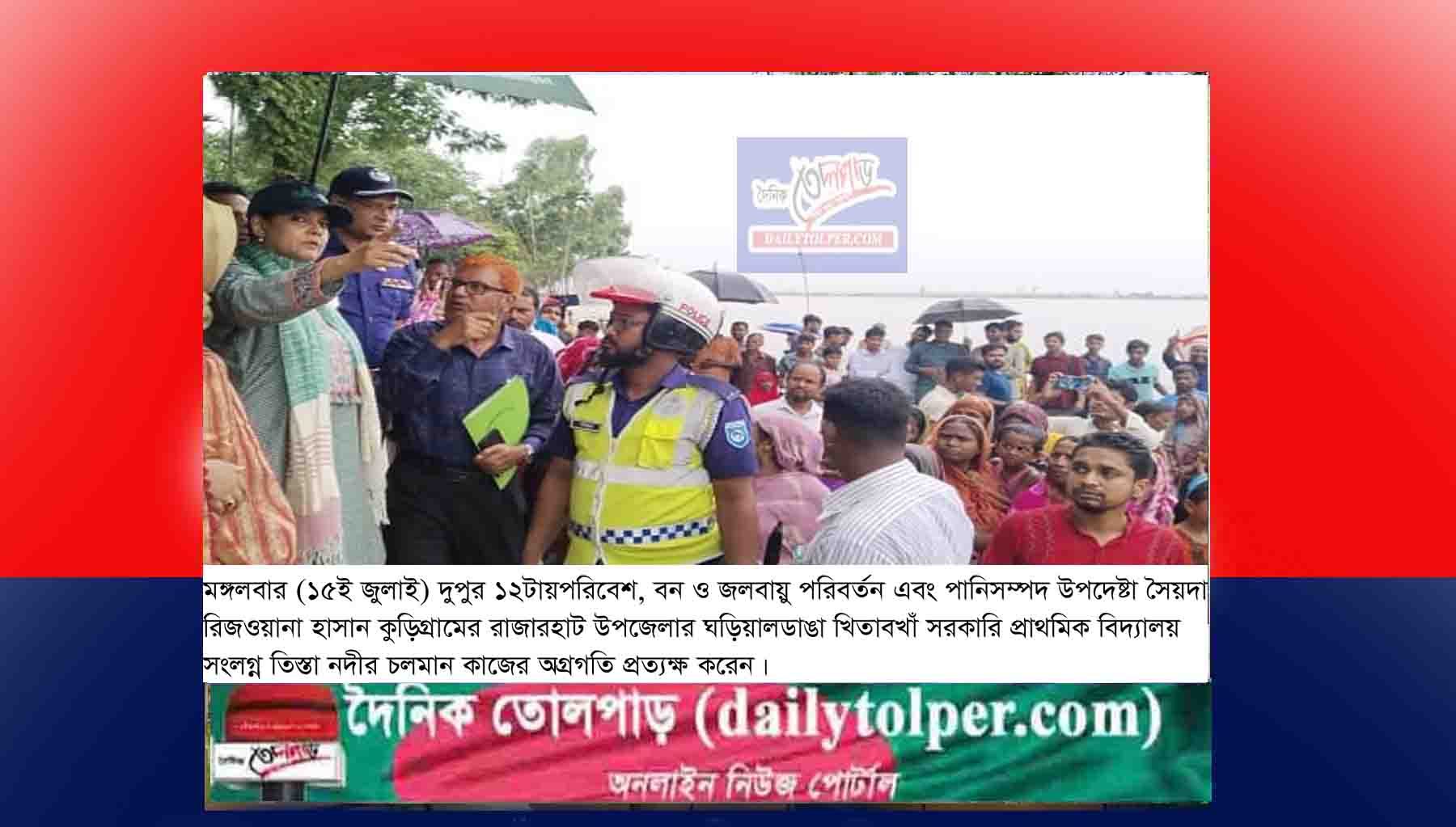 ‘স্থানীয় জনগণ তিস্তা নদীতীরে স্থায়ী বাঁধের দাবী করছেন। একটা দেড় বছরের সরকারের কাছে অল্প সময়ে এতো দাবী করলে আমরা কিভাবে করবো। ইতিপূর্বে তিস্তা নদীর বিভিন্ন স্থানে আমরা পাঁচটি গণশুনানি করেছি। এগুলো সরকারের নীতি নির্ধারণে পর্যায়ে জমা হয়েছে। আগামী অক্টোবরের মধ্যে তিস্তা মহাপরিকল্পনার ডিজাইন চূড়ান্ত হবে।’ মঙ্গলবার (১৫ জুলাই) দুপুর ১২ টায় কুড়িগ্রামের রাজারহাট উপজেলার ঘড়িয়ালডাঙ্গা ইউনিয়নের খিতাবখাঁ সরকারি প্রাথমিক বিদ্যালয় সংলগ্ন তিস্তা নদীতীর রক্ষায় চলমান কাজ পরিদর্শনে এসে পরিবেশ, বন ও জলবায়ু পরিবর্তন এবং পানিসম্পদ উপদেষ্টা সৈয়দা রিজওয়ানা হাসান এসব কথা বলেন।