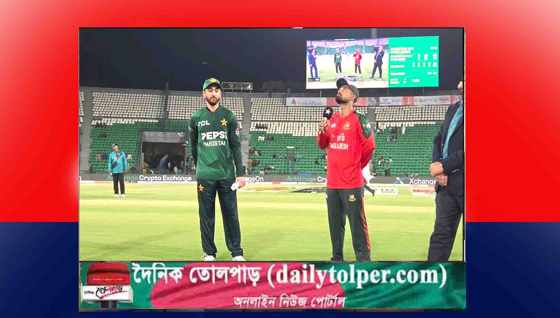 মিরপুর শের-ই বাংলা জাতীয় স্টেডিয়ামে পাকিস্তানের বিপক্ষে তিন ম্যাচ সিরিজের প্রথম টি-টোয়েন্টিতে টস জিতে আগে ফিল্ডিংয়ের সিদ্ধান্ত নিয়েছে বাংলাদেশ। টানা নয় ম্যাচে টস হারের পর দশম ম্যাচে এসে ভাগ্য ফিরে পেয়েছেন লিটন। অধিনায়ক হিসেবে দায়িত্ব নেওয়ার পর এবারই প্রথম টস জিতলেন তিনি।