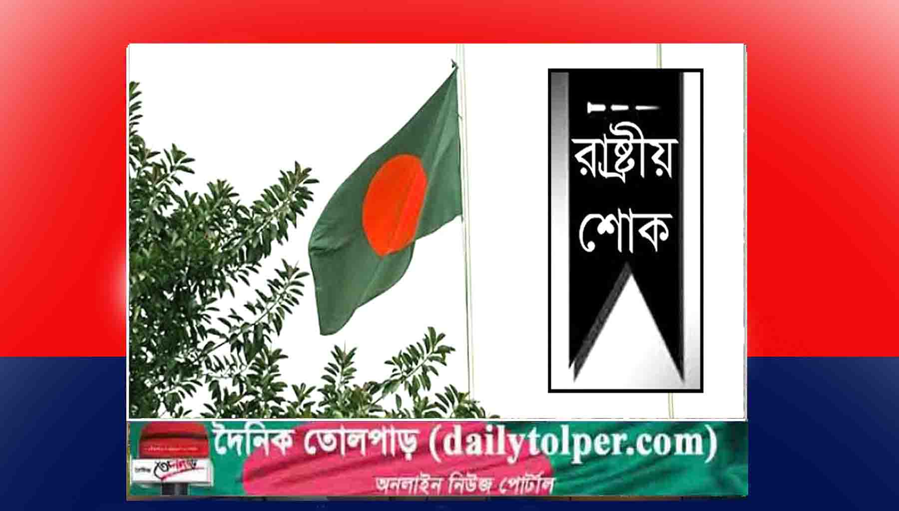 বাংলাদেশের সব সরকারি, আধা সরকারি, স্বায়ত্বশাসিত প্রতিষ্ঠান, শিক্ষা প্রতিষ্ঠানে জাতীয় পতাকা অর্ধনমিত থাকবে। পাশাপাশি সব সরকারি, বেসরকারি ভবন ও বিদেশে বাংলাদেশি মিশনেও জাতীয় পতাকা অর্ধনমিত থাকবে।-খবর তোলপাড়।
