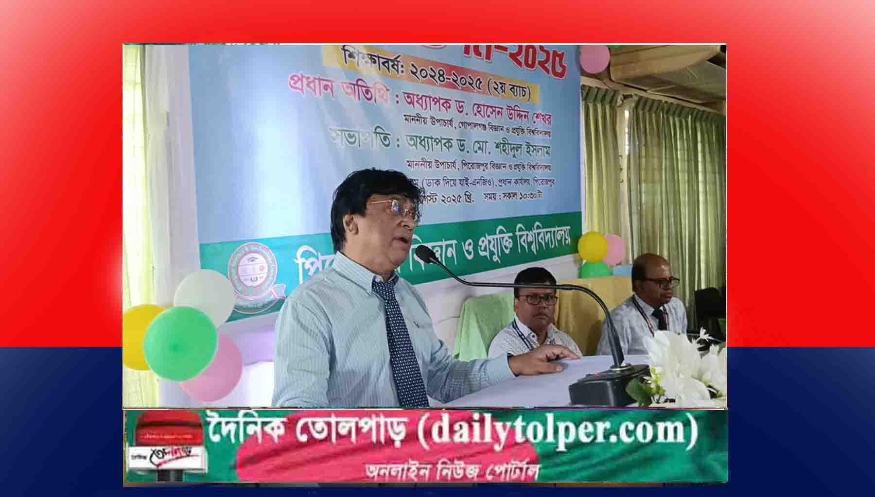বিশ্ববিদ্যালয়ের উপাচার্য অধ্যাপক ড. মো. শহীদুল ইসলাম এর সভাপতিত্বে অনুষ্ঠানে প্রধান অতিথি ছিলেন গোপালগঞ্জ বিজ্ঞান ও প্রযুক্তি বিশ্ববিদ্যালয়ের উপাচার্য অধ্যাপক ড. হোসেন উদ্দিন শেখর। এ সময় গোপালগঞ্জ বিজ্ঞান ও প্রযুক্তি বিশ্ববিদ্যালয়ের কয়েকজন শিক্ষক, পিরোজপুর বিজ্ঞান ও প্রযুক্তি বিশ্ববিদ্যালয়ের সকল শিক্ষক-শিক্ষিকা, কর্মকর্তা-কর্মচারী, প্রথম ব্যাচের শিক্ষার্থী, নবীন শিক্ষার্থী ও তাদের অভিভাবকরা উপস্থিত ছিলেন।