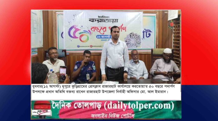 ‘‌দৈনিক করতোয়া পত্রিকাটির পাঠক সংখ্যা কমে গেলেও মান কমেনি’-দৈনিক’ করতোয়া’র ৫০বছরে পদার্পণ উদযাপনে রাজারহাট ইউএনও আল ইমরান