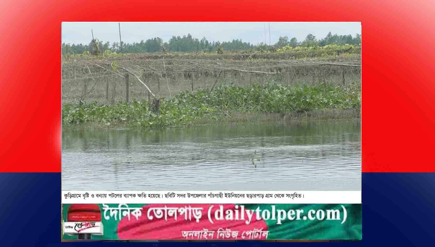 কুড়িগ্রামে বৃষ্টির কারণে পটল ক্ষেতের ব্যাপক ক্ষতি সাধিত হলেও বৃষ্টি থেমে যাওয়ার পর কৃষকরা আবার সার, কীটনাশক ও পরিচর্চা করে ক্ষেতে প্রাণ ফিরিয়ে আনার চেষ্টা করলেও হঠাৎ করে নদ-নদীতে পানি বৃদ্ধি পাওয়ায় পটলক্ষেতসহ অন্যান্য শাকসবজির ক্ষেত তলিয়ে যায়। এতে অন্যান্য ফসলের সাথে পটলের ক্ষেতও বিনষ্ট হয়ে যায়। ফলে ক্ষুদ্র কৃষকরা অর্থ লগ্নি করে খুব দুশ্চিন্তার মধ্যে দিন পার করছেন।