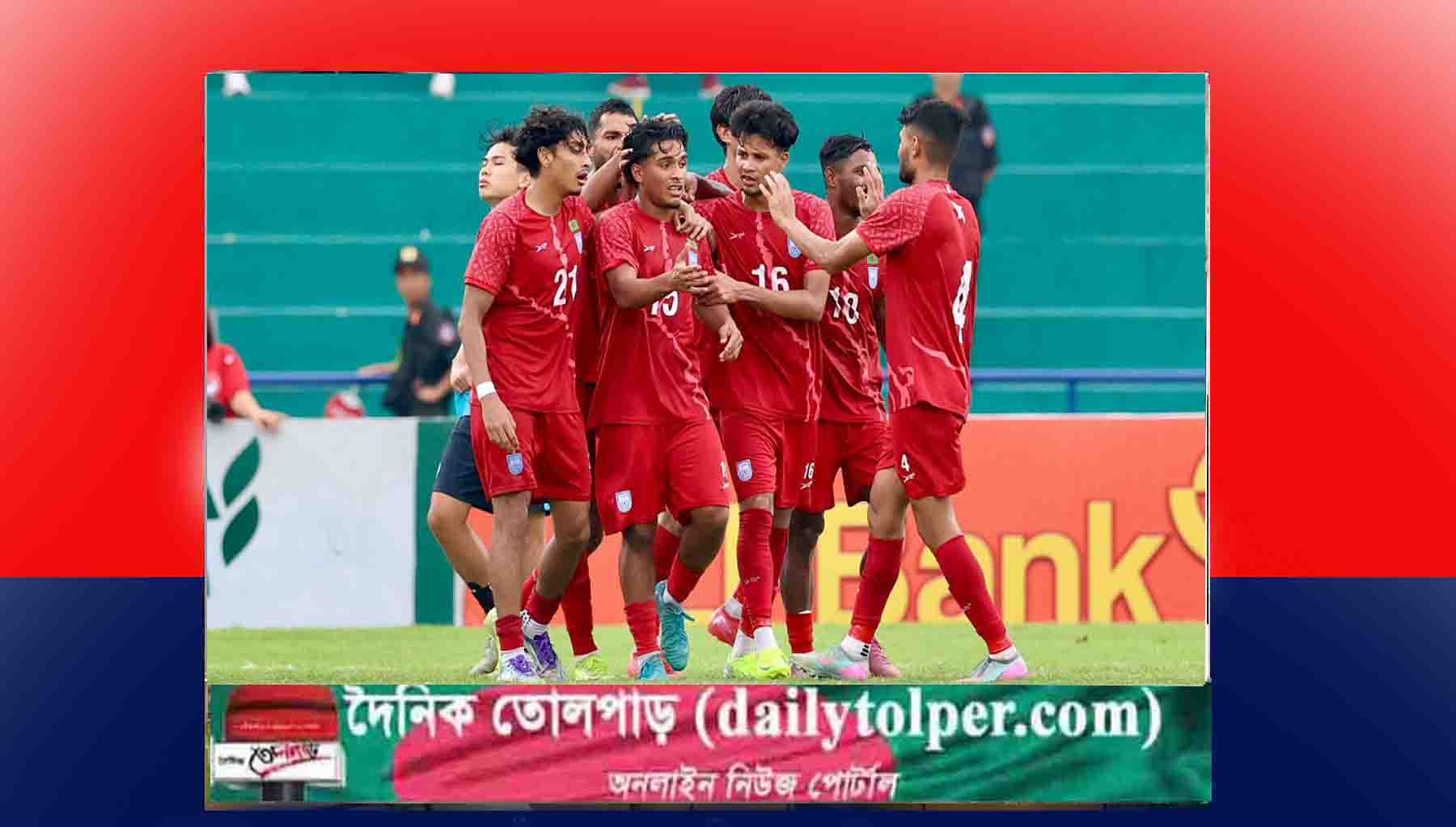 প্রথম দুই ম্যাচ হেরে এএফসি অ-২৩ এশিয়ান কাপের মূল পর্বে খেলার স্বপ্ন শেষ হলেও তৃতীয় রাউন্ডে সিঙ্গাপুরকে বড় ব্যবধানে হারিয়ে শেষটা অন্তত রাঙাতে পেরেছে বাংলাদেশ। মঙ্গলবার (৯ সেপ্টেম্বর) ভিয়েতনামের ভিয়েত ত্রি স্টেডিয়ামে ‘সি’ গ্রুপের ম্যাচে সিঙ্গাপুরকে ৪-১ গোলে হারিয়েছে বাংলাদেশের অ-২৩ দল।-খবর তোলপাড়।