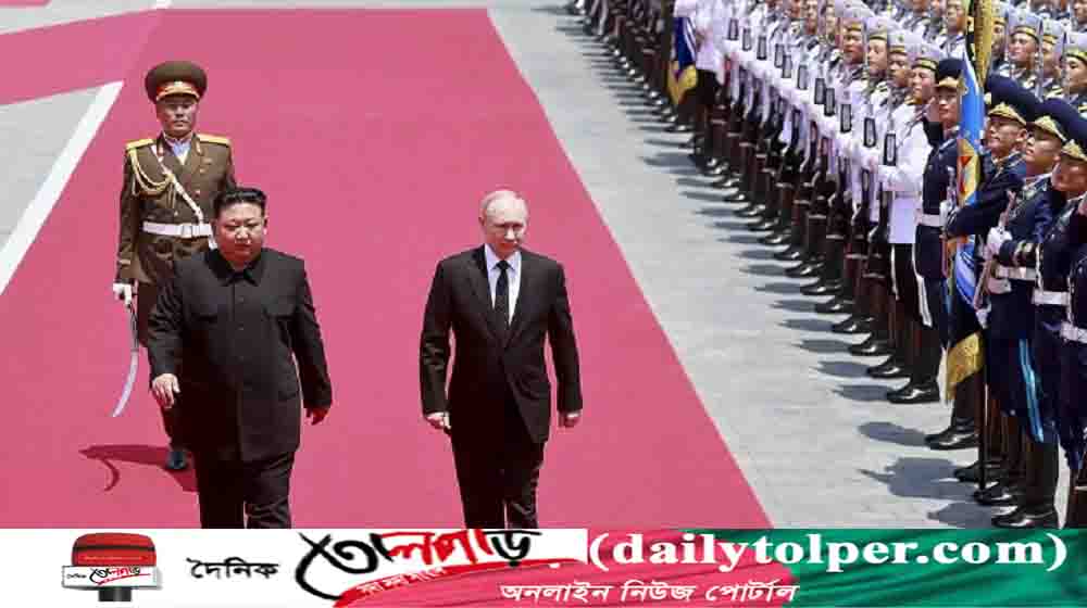 লালগালিচা সংবর্ধনার মাধ্যমে জমকালো আয়োজনে রুশ প্রেসিডেন্ট ভ্লাদিমির পুতিনকে স্বাগত জানিয়েছেন উত্তর কোরিয়ার নেতা কিম জং–উন। এদিকে, পুতিনের উত্তর কোরিয়া সফরের বিষয়ে চীনের অবস্থান জানতে চাইলে দেশটির পররাষ্ট্র মন্ত্রণালয়ের মুখপাত্র লিন জিয়ান বলেন, এটা শুধুই রাশিয়া এবং উত্তর কোরিয়ার দ্বিপক্ষীয় মতবিনিময়। এর চেয়ে বেশিকিছু বলতে রাজি হননি তিনি।-খবর তোলপাড় ।