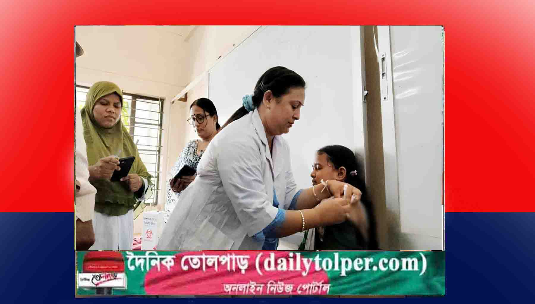 আলোচনা সভা শেষে বিভিন্ন বয়সের শিক্ষার্থীদের টাইফয়েড প্রতিরোধক টাইফয়েড টিকা প্রদান করা হয়।