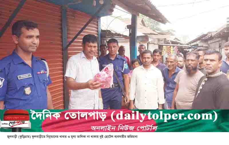 কুড়িগ্রামের ফুলবাড়ীতে হোটেলে খাবারের মান নিম্নমানের থাকায় এবং মূল্য তালিকা না থাকায় দুই হোটেল ব্যবসায়ীর জরিমানা করা হয়েছে।
