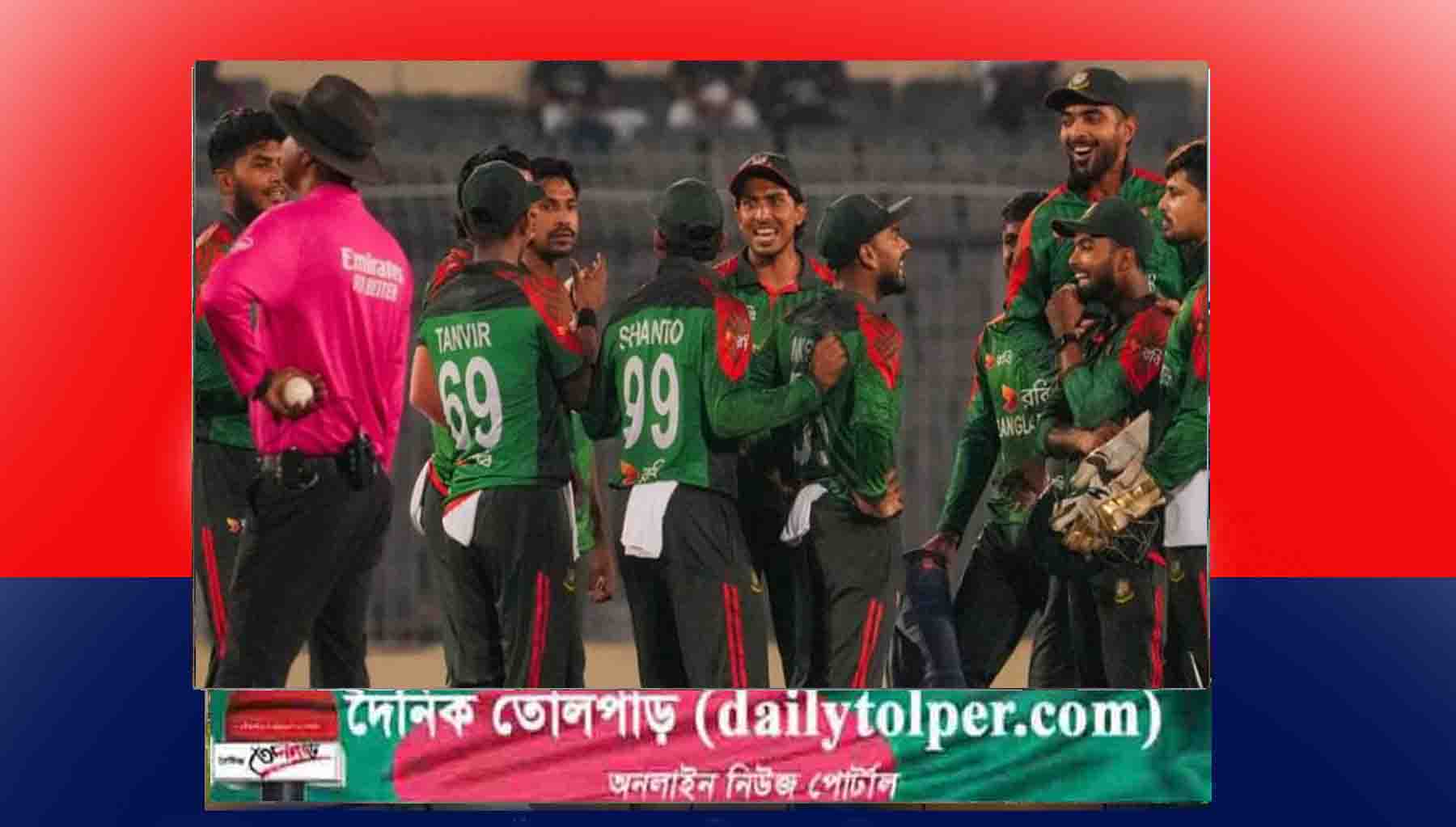 বৃহস্পতিবার(২৩অক্টোবর) দুপুরে মিরপুরে টস জিতে আগে ব্যাট করতে নেমে নির্ধারিত ৫০ ওভারে ৮ উইকেট হারিয়ে ২৯৬ রান সংগ্রহ করে বাংলাদেশ। দলের হয়ে সর্বোচ্চ ৯১ রান করেছেন সৌম্য। এ ছাড়া ৮০ রান করেছেন সাইফ। জবাবে ৩০ ওভার এক বলে সবকটি উইকেট হারিয়ে ১১৭ রান করেছে ওয়েস্ট ইন্ডিজ।-খবর তোলপাড়।