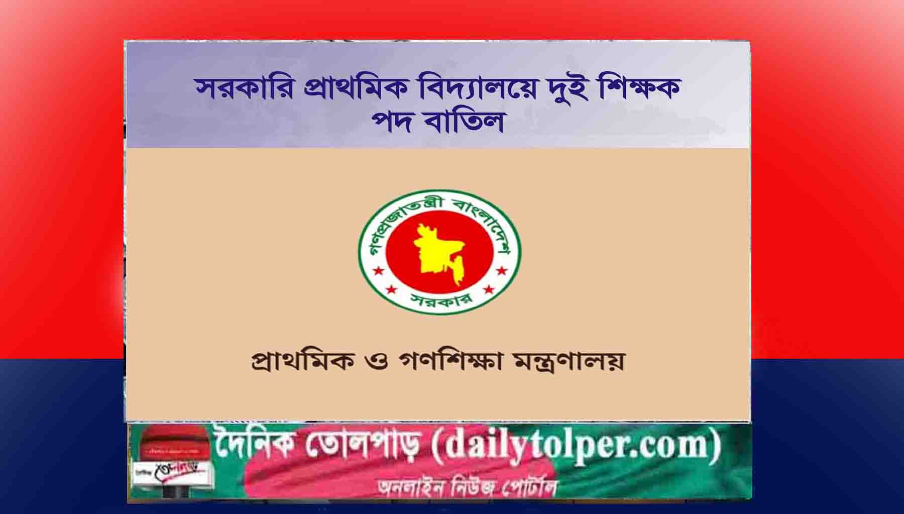 বিতর্কের মুখে পদ দুটি বাতিলসহ সংশোধিত বিধিমালার গেজেট প্রকাশ হয়েছে গতকাল রোববার (২ নভেম্বর)। বিষয়টি নিশ্চিত করেছেন প্রাথমিক ও গণশিক্ষা মন্ত্রণালয়ের বিদ্যালয় অনুবিভাগের অতিরিক্ত সচিব মাসুদ আকতার খান।-খবর তোলপাড়।