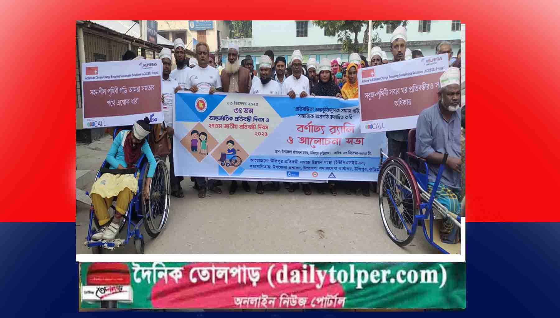 প্রতিবন্ধিতা অন্তর্ভুক্তিমূলক সমাজ গড়ি, সামাজিক অগ্রগতি ত্বরান্বিত করি। এ প্রতিপাদ্য কে ধারণ করে কুড়িগ্রামের উলিপুরে আন্তর্জাতিক প্রতিবন্ধী দিবস ও ২৭ তম জাতীয় প্রতিবন্ধী দিবস ২০২৫ উদযাপন উপলক্ষে বর্ণাঢ্য রেলি ও আলোচনা সভা অনুষ্ঠিত হয়েছে।