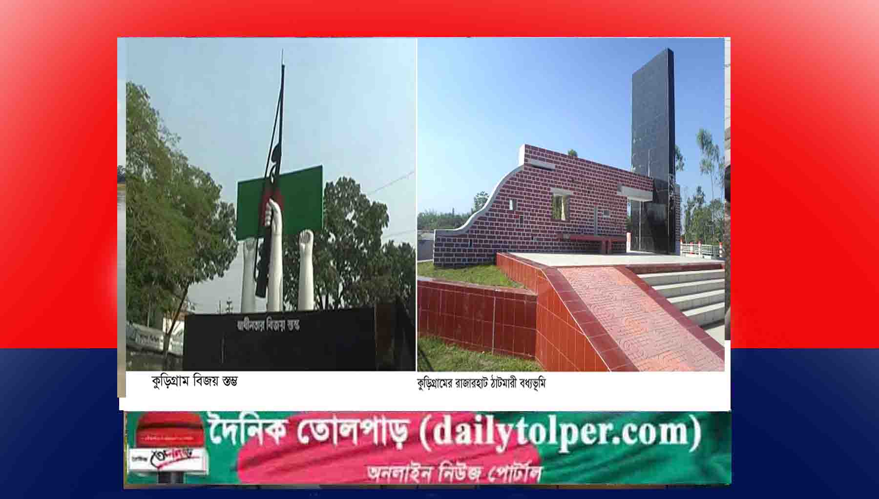 ঐতিহাসিক ৬ ডিসেম্বর। ১৯৭১ সালের এইদিনে বাংলার দামাল ছেলেরা সশস্ত্র মুক্তিযুদ্ধের মাধ্যমে পাকিস্তানি হানাদার বাহিনীকে হটিয়ে কুড়িগ্রামকে স্বাধীন করে। মুক্তিযুদ্ধের চূড়ান্ত বিজয় ৬ ডিসেম্বর না হলেও সেদিনই বাংলার দামাল ছেলেরা কুড়িগ্রামকে শত্রুমুক্ত করে স্বাধীন বাংলার লাল-সবুজ খচিত পতাকা উত্তোলন করে ইতিহাস সৃষ্টি করে। এই দিবসটি উপলক্ষ্যে প্রতিবছরের মতো এবারও স্থানীয় রাজনৈতিক, সামাজিক ও সাংস্কৃতিক সংগঠন আলোচনা সভা, বিজয়স্তম্ভে পুষ্পস্তবক অর্পণ ও বর্ণাঢ্য শোভাযাত্রার আয়োজন করেছে।