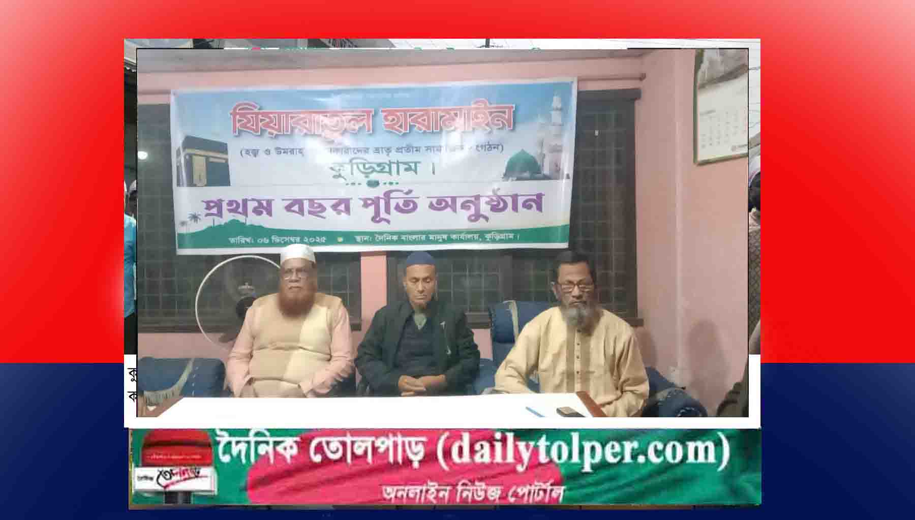 কুড়িগ্রামে হাজীদের নিয়ে গঠিত সংগঠন 'যিয়ারাতুল হারামাইন'র প্রথম বছর পূর্তি উদযাপন করা হয়েছে। এতে হাজীরা তাদের সুচিন্তিত বক্তব্য রাখেন।