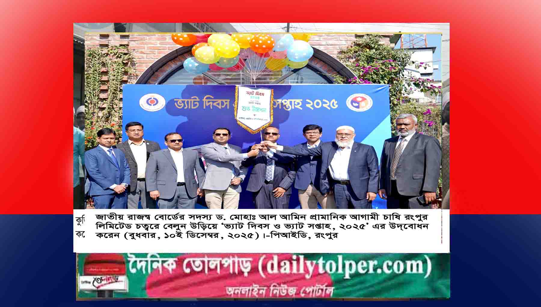 ‘সময়মত নিবন্ধন নিব, সঠিকভাবে ভ্যাট দিব’—এই প্রতিপাদ্যে রংপুরে ভ্যাট দিবস ও ভ্যাট সপ্তাহ, ২০২৫ উদ্যাপিত হয়েছে। বুধবার (১০ই ডিসেম্বর) আগামী চাষি রংপুর লিমিটেডের কনফারেন্স রুমে আয়োজিত সেমিনারে প্রধান অতিথি হিসাবে উপস্থিত ছিলেন জাতীয় রাজস্ব বোর্ডের (এনবিআর) সদস্য (কাস্টমস : নিরীক্ষা, আধুনিকায়ন ও আন্তর্জাতিক বাণিজ্য) ড. মোহাঃ আল আমিন প্রামানিক। রংপুর কাস্টমস, এক্সাইজ ও ভ্যাট কমিশনারেট এই অনুষ্ঠান আয়োজন করে।