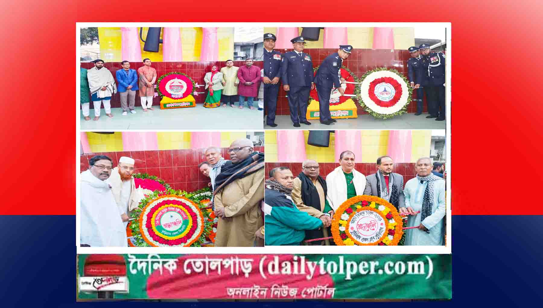 জেলা প্রশাসনের আয়োজনে কলেজ মোড়স্থ স্বাধীনতার বিজয়স্তম্ভে পুস্পস্তবক অর্পণের মাধ্যমে শহিদদের প্রতি শ্রদ্ধা জানান জেলা প্রশাসন, পুলিশ বিভাগ, স্বাস্থ্য বিভাগ, কুড়িগ্রাম প্রেসক্লাব, জেলা বিএনপি, এনসিপি, বৈষম্য বিরোধী ছাত্র আন্দোলনসহ বিভিন্ন সরকারি-বেসরকারি প্রতিষ্ঠান, অন্যান্য রাজনৈতিক ও সামাজিক-সাংস্কৃতিক সংগঠন।