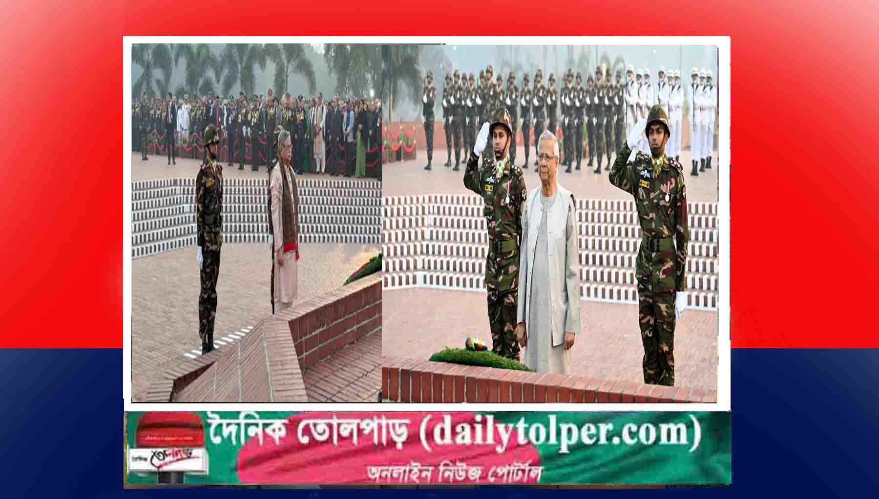 মহান বিজয় দিবসে জাতীয় স্মৃতিসৌধে বীর শহীদদের প্রতি শ্রদ্ধা জানিয়েছেন প্রধান উপদেষ্টা ড. মুহাম্মদ ইউনূস।