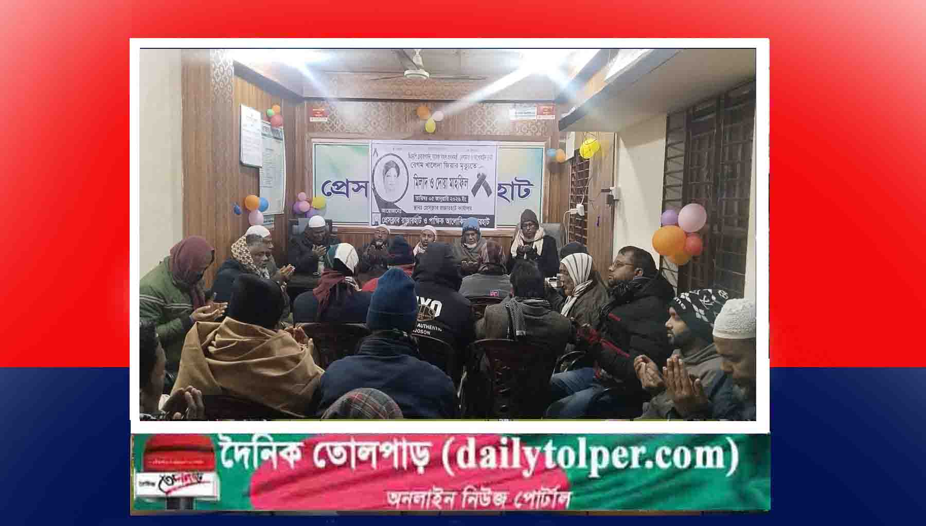 বিএনপি চেয়ারপারসন ও তিনবারের সাবেক প্রধানমন্ত্রী বেগম খালেদা জিয়ার মৃত্যুতে প্রেসক্লাব রাজারহাট ও পাক্ষিক আলোকিত রাজারহাট’র আয়োজনে দোয়া মাহফিল অনুষ্ঠিত হয়েছে। সোমবার(৫জানুয়ারী) মাগরিব বাদ প্রেসক্লাব মিলনায়তনে এ দোয়া মাহফিল অনুষ্ঠিত হয়।