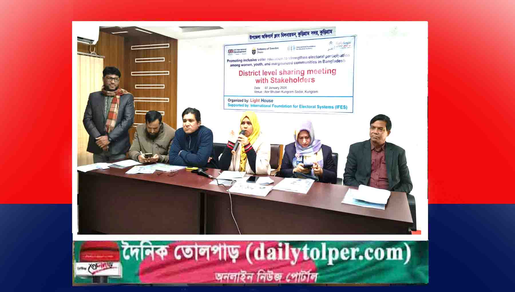 কুড়িগ্রামে নারী,যুব এবং প্রান্তিক জনগোষ্টির মধ্যে নির্বাচনী অংশগ্রহণ জোরদার করার জন্য অন্তর্ভূক্তিমূলক ভোটার শিক্ষার প্রচার করা নিয়ে একদিনের কর্মশালা অনুষ্ঠিত হয়েছে।