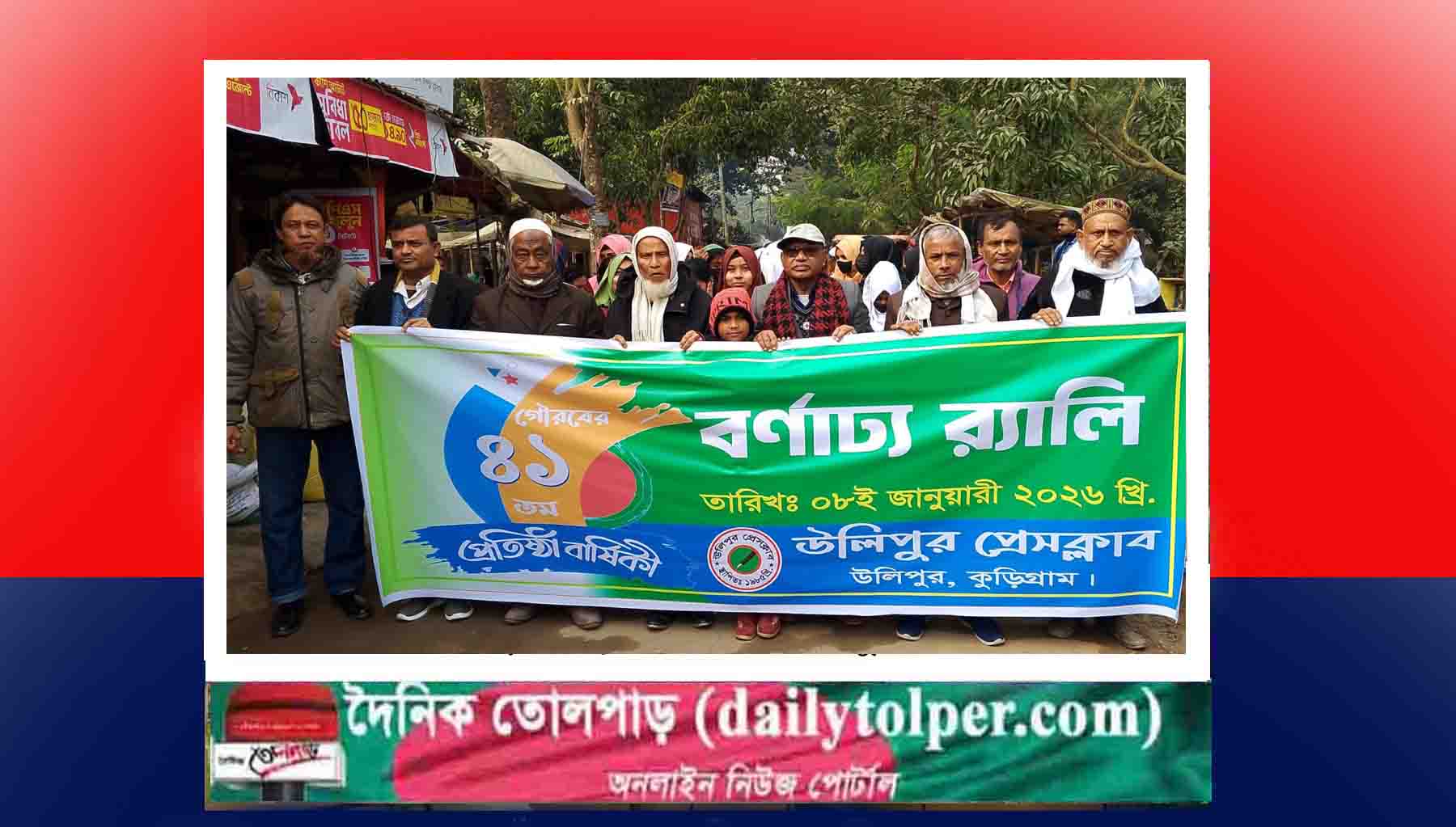 কুড়িগ্রামের উলিপুর প্রেসক্লাবের ৪১তম প্রতিষ্ঠা বার্ষিকী পালিত হয়েছে। এ উপলক্ষে সকালে জাতীয় ও সাংগঠনিক পতাকা উত্তোলন, র্যালী, কেক কাটা, শুভেচ্ছা বিনিময় ও আলোচনা সভা অনুষ্ঠিত হয়েছে।