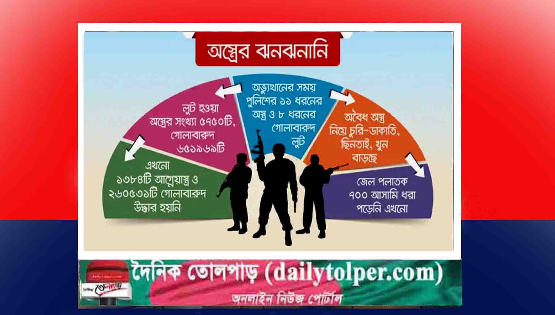 বিশ্লেষকরা মনে করছেন, আইনশৃঙ্খলা বাহিনীর ব্যবহৃত ওই সব লুণ্ঠিত ১ হাজার ৩০০-এর বেশি অস্ত্র পেশাদার অপরাধীদের হাতে রয়ে গেছে। ফলে অবৈধ অস্ত্র এবং লুট হওয়া আগ্নেয়াস্ত্রের কারণে মারাত্মক নিরাপত্তাঝুঁকি তৈরি হয়েছে, যা মূলত রাজনৈতিক নেতা-কর্মীদের ভীতি বাড়িয়ে দিচ্ছে। এরই মধ্যে রাজধানী ঢাকাসহ দেশের বিভিন্ন স্থানে বেশ কয়েকজন রাজনৈতিক নেতা-কর্মী দুর্বৃত্তদের গুলিতে নিহত হয়েছেন। এ রকম পরিস্থিতিতে যদিও পুলিশ বলছে অস্ত্র উদ্ধারে তারা সর্বোচ্চ চেষ্টা করে যাচ্ছে।-খবর তোলপাড়।