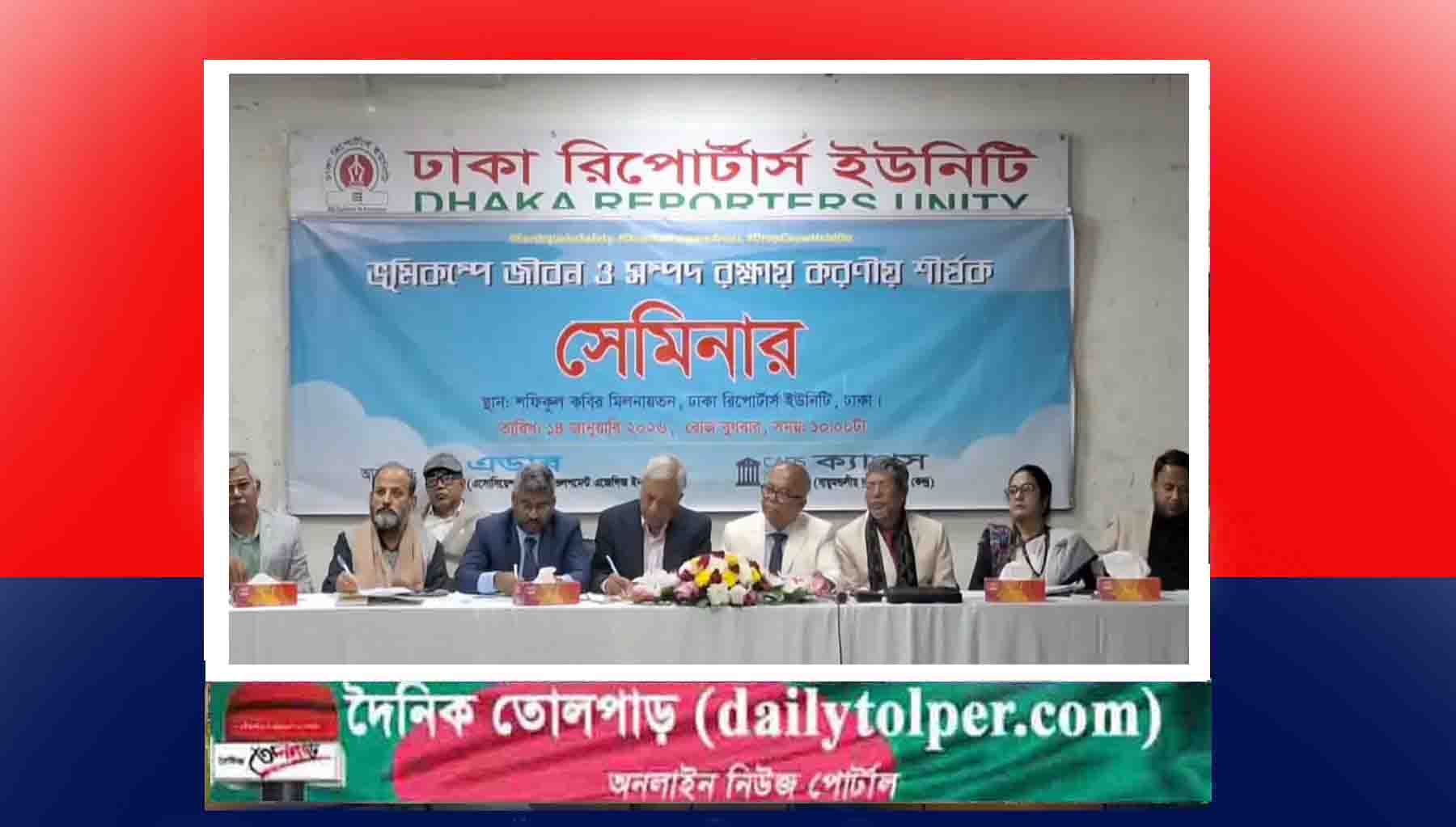বুধবার (১৪ জানুয়ারি) ঢাকা রিপোর্টার্স ইউনিটির শফিকুল কবির মিলনায়তনে আয়োজিত "ভূমিকম্পে জীবন ও সম্পদ রক্ষায় করণীয়" শীর্ষক সেমিনারে এই সুপারিশগুলো তুলে ধরেছেন ক্যাপস'র চেয়ারম্যান অধ্যাপক ড. আহমেদ কামরুজ্জামান মজুমদার। -খবর তোলপাড়।