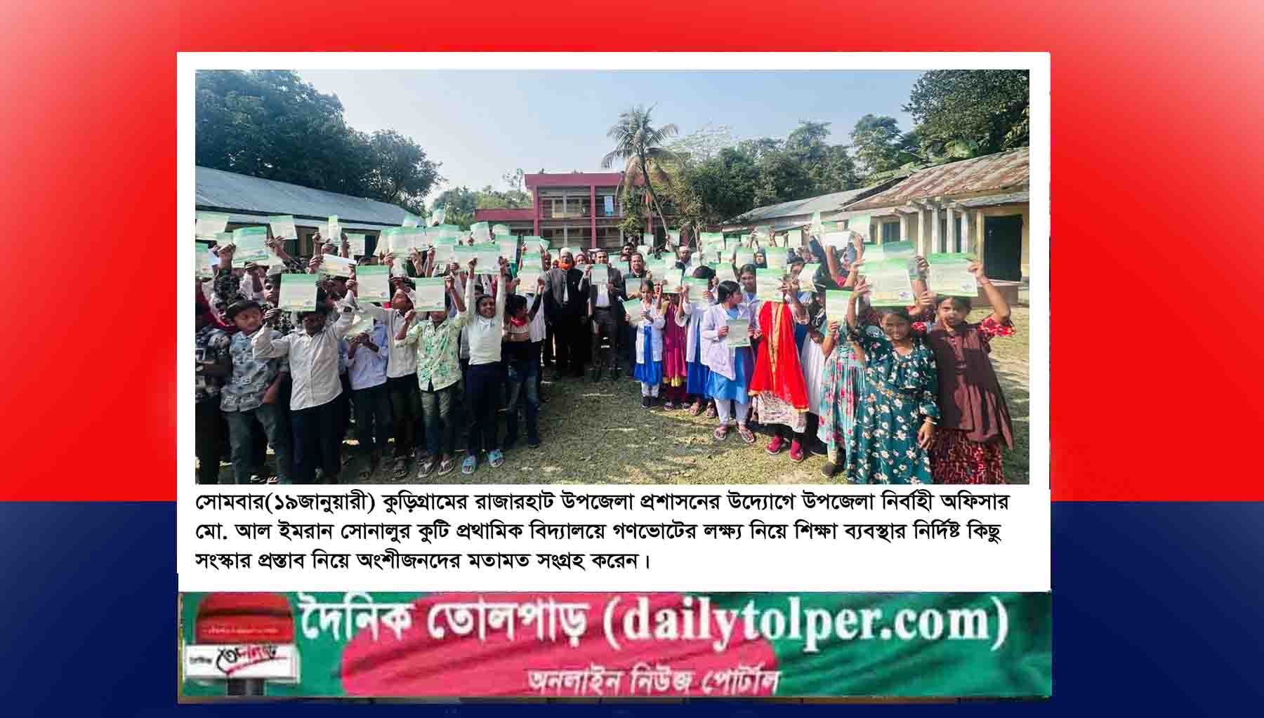 কুড়িগ্রামের রাজারহাট উপজেলার বিভিন্ন শিক্ষা প্রতিষ্ঠানে শিক্ষক, অভিভাবক ও শিক্ষার্থীদের অংশগ্রহণে গণভোটকে কেন্দ্র করে রাজারহাট উপজেলা নির্বাহী অফিসার মো. আল ইমরান ব্যাপক প্রচারণা চালাচ্ছেন।