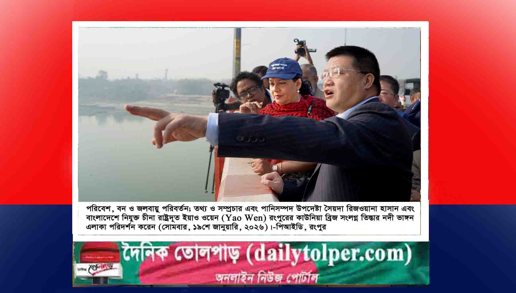 উপদেষ্টা সোমবার (১৯শে জানুয়ারি) সকালে রংপুরের কাউনিয়া ব্রিজ সংলগ্ন ১০নং পয়েন্টের তিস্তা নদীর ভাঙ্গন প্রবণ এলাকা পরিদর্শন শেষে এসব কথা বলেন।