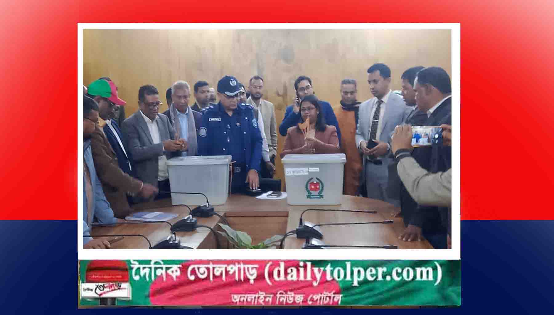 বৃহস্পতিবার ২৯ জানুয়ারী সন্ধ্যায় কুড়িগ্রাম জেলা প্রশাসকের কার্যালয় উওরণ হল রুমে পোস্টাল ব্যালট ভোট বাক্সের লক উদ্বোধন করা হয়।এসময় কুড়িগ্রাম জেলা প্রশাসক ও জেলা রিটার্নিং কর্মকর্তা অন্নপূর্ণা দেবনাথের সভাপতিত্বে আরো উপস্থিত ছিলেন অতিরিক্ত জেলা প্রশাসক সার্বিক বি.এম কুদরত এ খুদা,সহকারী কমিশনার ও এক্মিকিউটিভ ম্যাজিস্ট্রেট রাজস্ব শাখা ও ভুমি অধিগ্রহণ শাখা আবু বক্কর সিদ্দিক,জেলা নির্বাচন কর্মকর্তা আলমগীর হোসেন, কুড়িগ্রাম জেলা বিএনপির আহবায়ক মোস্তাফিজুর রহমান মোস্তফা, সিনিয়র যুগ্ম আহবায়ক অধ্যাপক শফিকুল ইসলাম বেবু,যুগ্ম আহবায়ক হাসিবুর রহমান হাসিব,জেলা বিএনপির সদস্য আশরাফুল হক রুবেল, কুড়িগ্রাম প্রেসক্লাবের ভারপ্রাপ্ত সাধারণ সম্পাদক মাহফুজার রহমান খন্দকার,সিনিয়র সাংবাদিক ইউনুছ আলী ও বিভিন্ন রাজনৈতিক দলের নেতৃত্ববৃন্দসহ গণমাধ্যমকর্মী উপস্থিত ছিলেন।