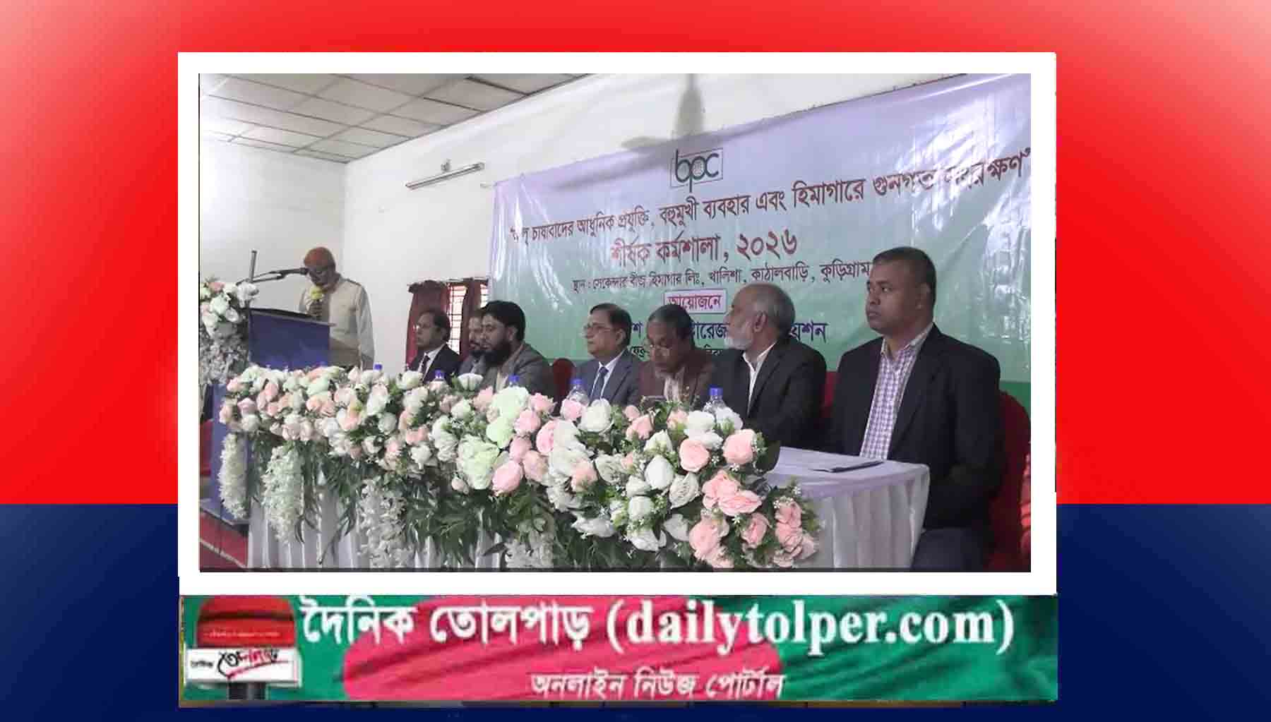 বাংলাদেশ কোল্ড ষ্টোরেজ এসাসিয়েশন আয়োজনে কুড়িগ্রামে আলু চাষীদের আধুনিক প্রযুক্তি বহমুখী ব্যবহার এবং হিমাগারে গুনগত সংক্ষন বিষয়ক কর্মশালা রবিবার দুপুরে অভিন্দন কনভেনসন সেন্টারে অনুষ্ঠিত হয়।
