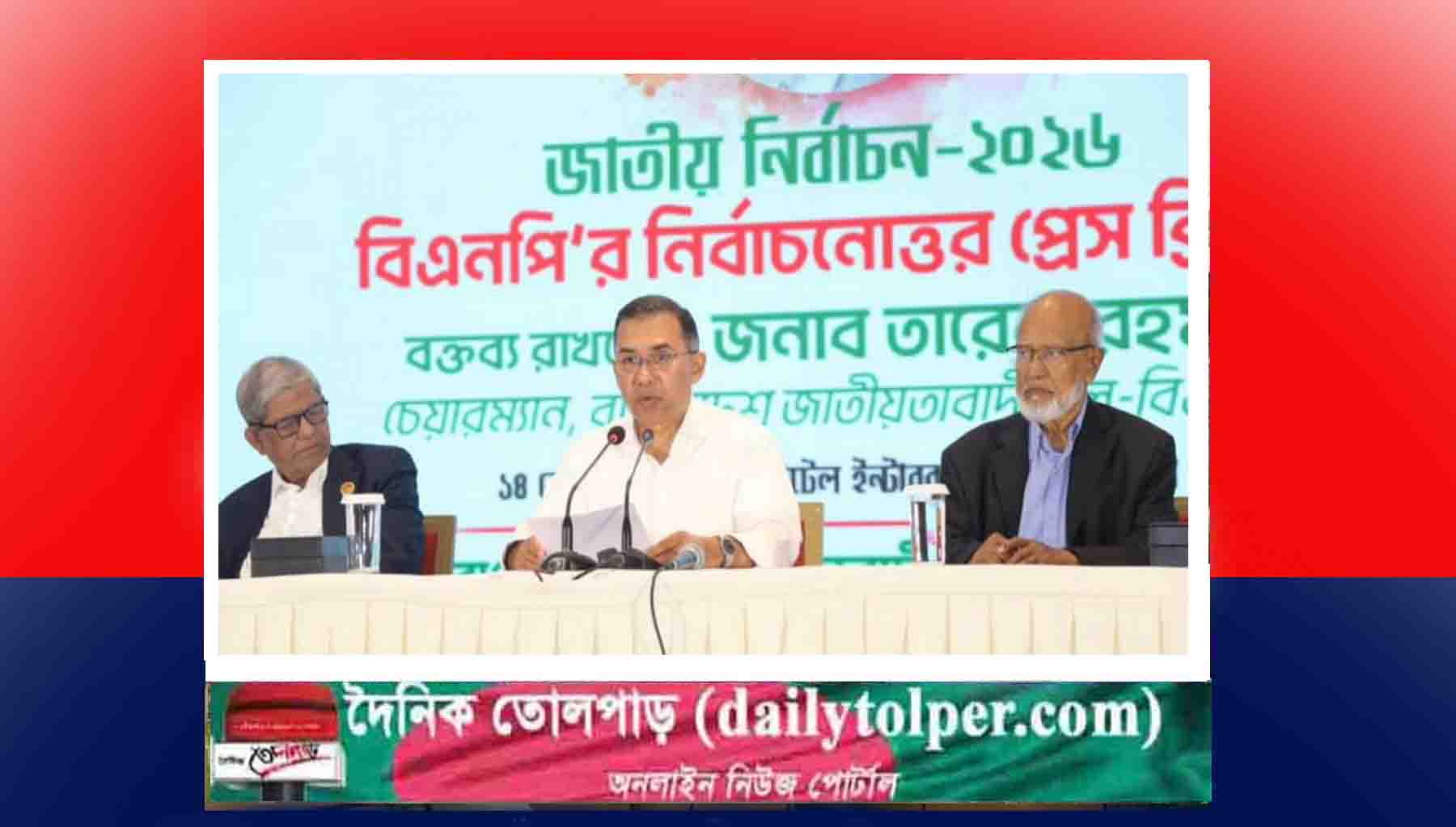 শনিবার (১৪ ফেব্রুয়ারি) বিকেল পৌনে ৪টার দিকে রাজধানীর হোটেল ইন্টারকন্টিনেন্টালে আয়োজিত নির্বাচন-পরবর্তী সংবাদ সম্মেলনে তিনি বলেন, “দেশের স্বাধীনতাপ্রিয়, গণতন্ত্রপ্রিয় জনগণ আবারও বিএনপিকে বিজয়ী করেছে। আলহামদুলিল্লাহ। এ বিজয় বাংলাদেশের, এ বিজয় গণতন্ত্রের; এই বিজয় গণতন্ত্রকামী জনগণের। আজ থেকে আমরা সবাই স্বাধীন।”-খবর তোলপাড়।