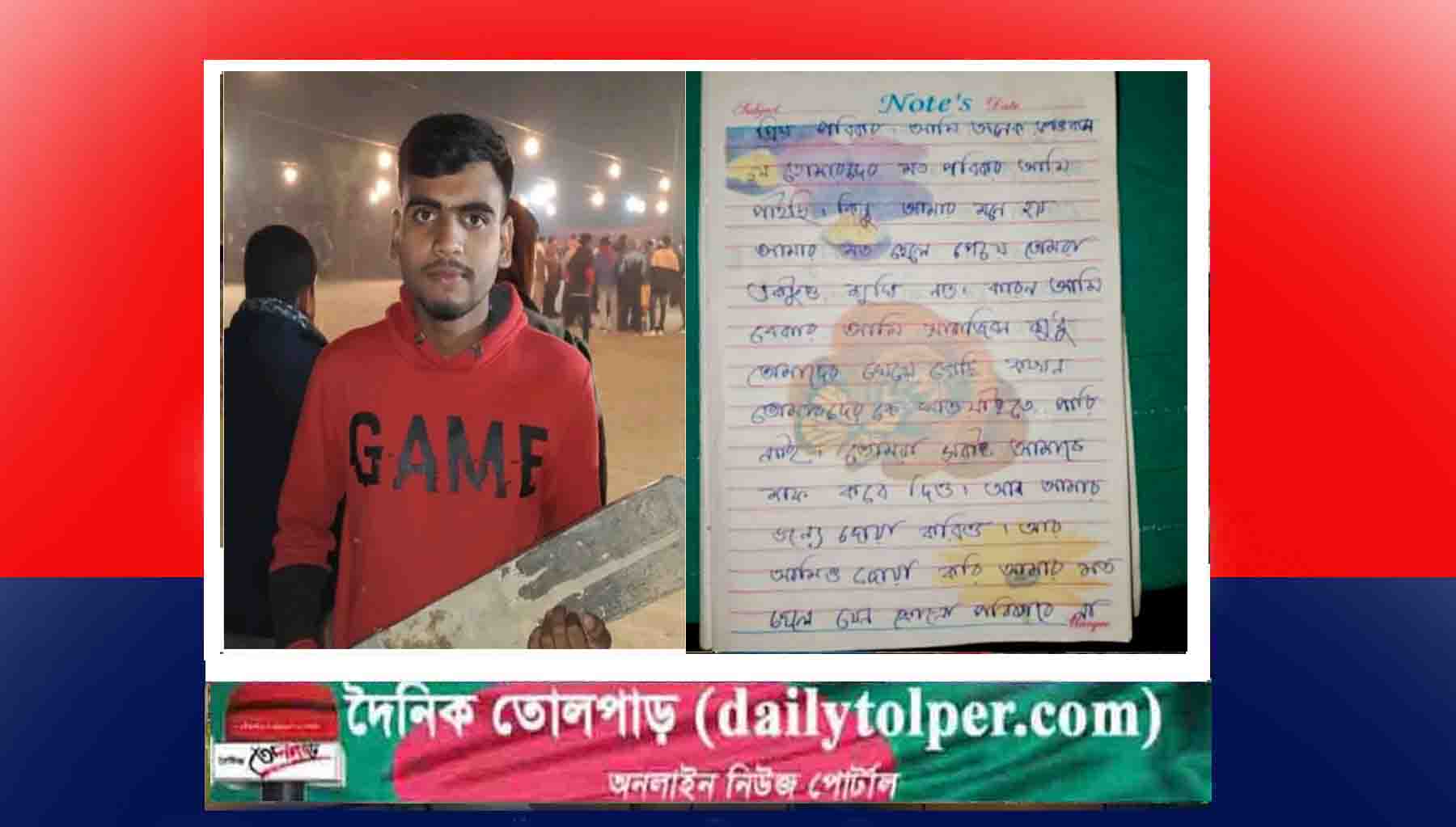 চিরকুটে তিনি লেখেন "প্রিয় পরিবার। আমি অনেক ভাগ্যবান যে তোমাদের মত পরিবার আমি পাইছি। কিন্তু আমার মনে হয়, আমার মত ছেলে পেয়ে তোমরা একটুও সুখী নও। কারণ আমি বেকার। আমি সারাজীবন শুধু তোমাদের খেয়ে গেছি, কখনো তোমাদেরকে খাওয়াইতে পারি নাই। তোমরা সবাই আমাকে মাফ করে দিও। আর আমার জন্য দোয়া করিও। আর আমিও দোয়া করি, আমার মত ছেলে যেন কোনো পরিবারে না জন্মে।"
