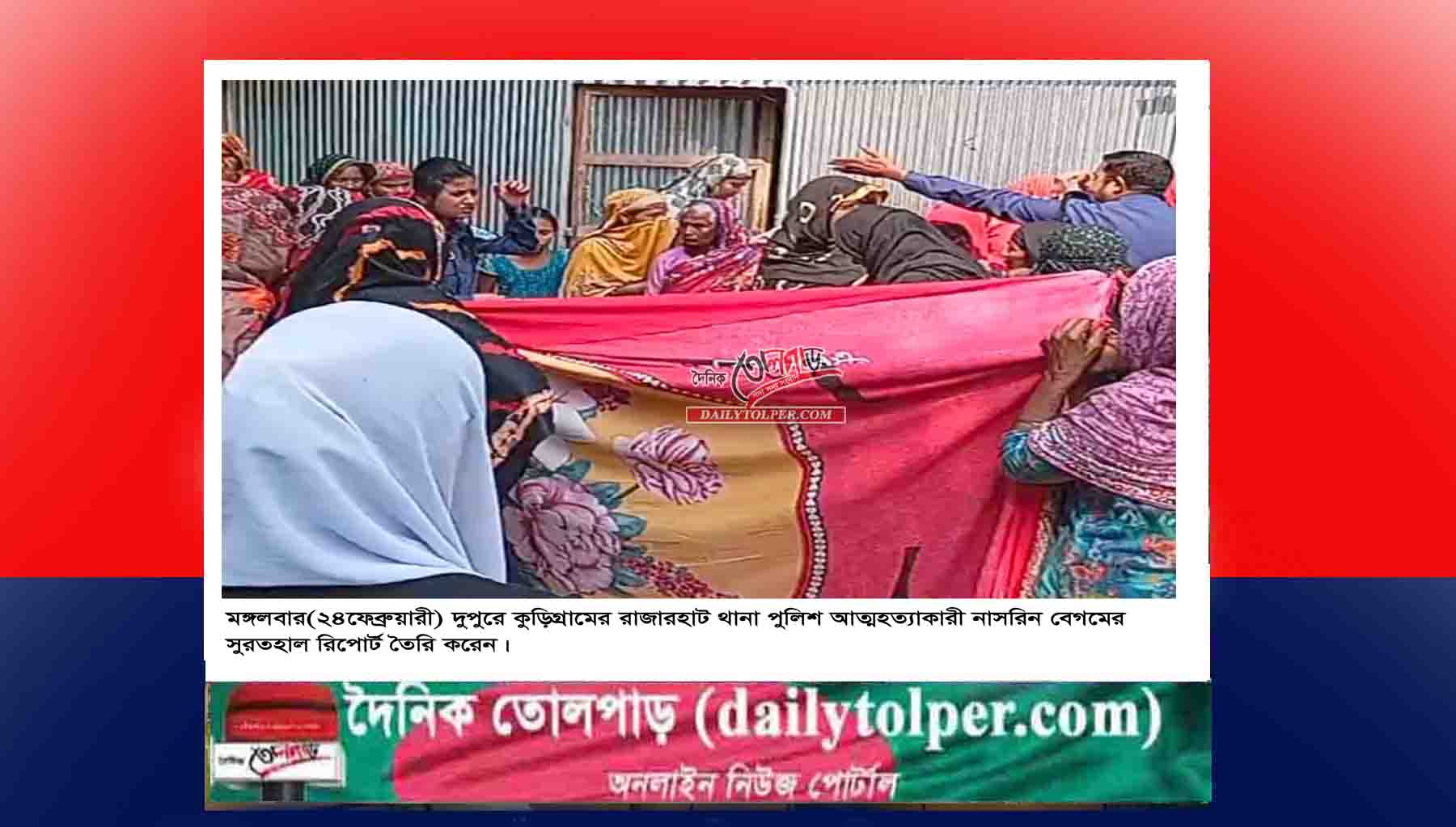 আত্মহত্যাকারী নাসরিন বেগম(২৫) ওই গ্রামের বয়লার মুরগী বিক্রেতা নুর আলমের স্ত্রী। আত্মহত্যার বিষয়টি রাজারহাট থানার অফিসার ইনচার্জ আব্দুল ওয়াদুদ নিশ্চিত করেছেন।