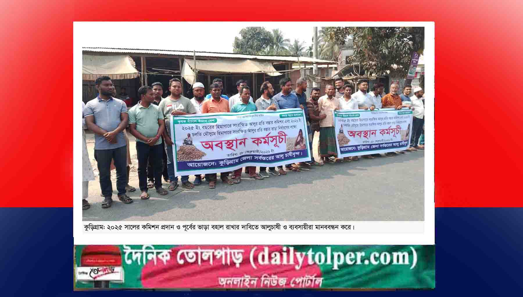 আলুচাষে লোকসানের ধাক্কা ও হিমাগার মালিকদের বছর বছর ভাড়া বৃদ্ধি ও কমিশন বন্ধের প্রতিবাদের কুড়িগ্রামে আলুচাষী ও ব্যবসায়ীরা প্রতিবাদ সমাবেশ ও মানববন্ধন করেছে।