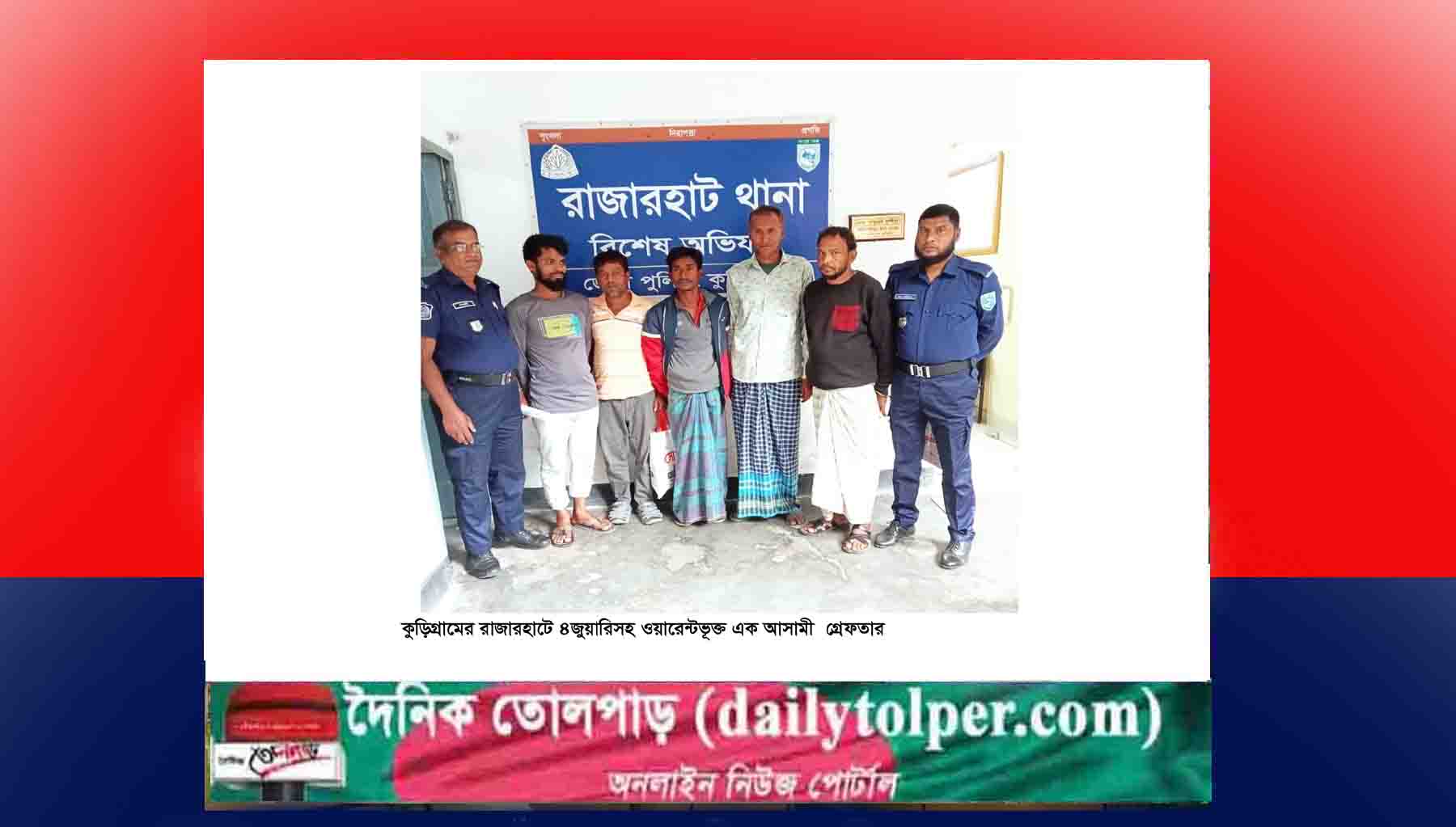 কুড়িগ্রামের রাজারহাট থানা পুলিশ ৪জুয়ারিসহ একওয়ারেন্টভূক্ত আসামীকে গ্রেফতার করে জেলহাজতে প্রেরণ করেছে।
