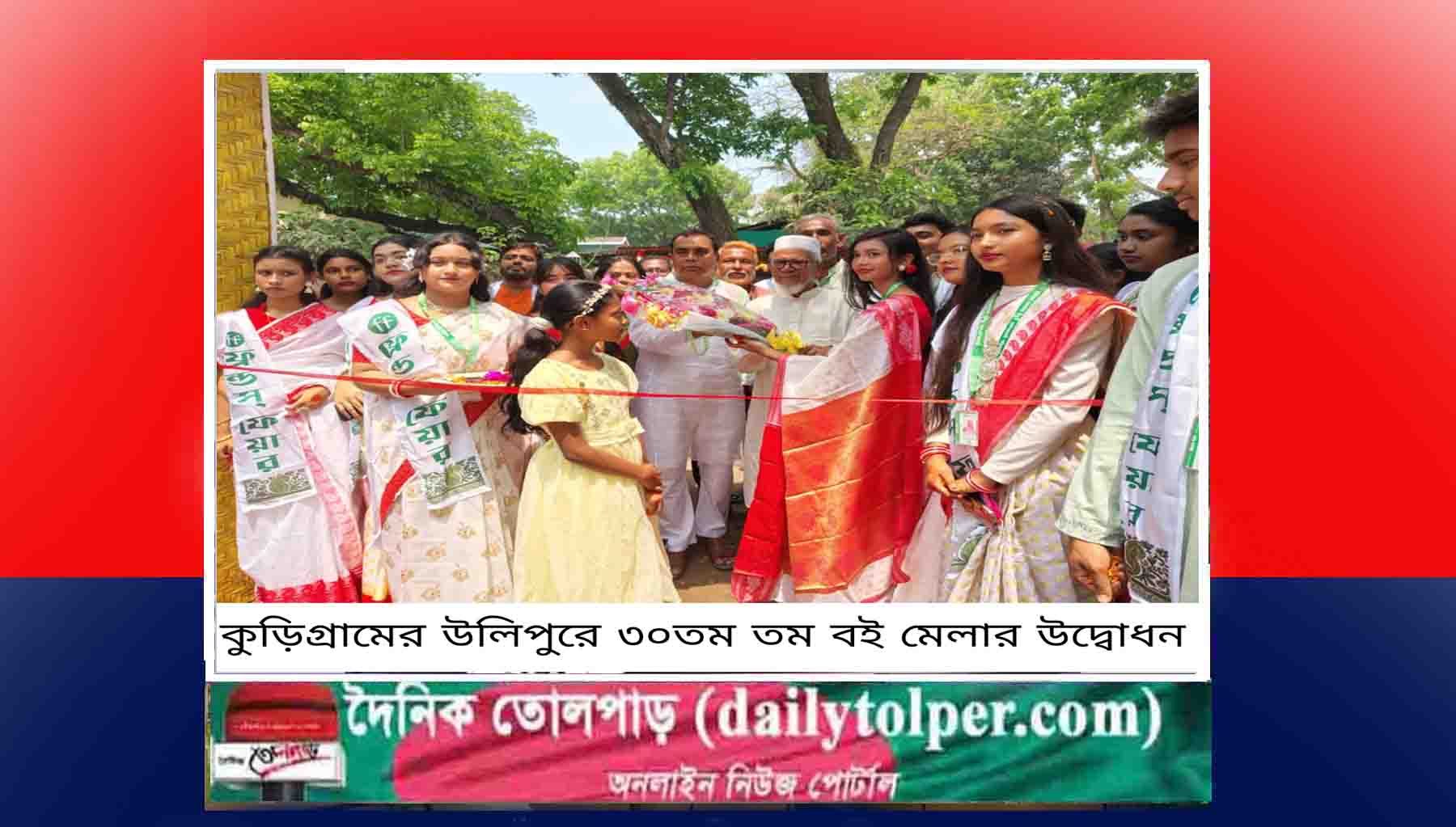 "তোমাদের রক্তসিক্ত মাটিতে প্রতিনিয়তই জন্মে বিবর্তনের অংকুর" এই প্রতিপাদ্যে কুড়িগ্রামের উলিপুরে ৩০তম বই মেলার উদ্বোধন হয়েছে। শনিবার (৪ এপ্রিল) বেলা ১১টায় সামাজিক ও সেচ্ছাসেবী সংগঠন ফ্রেন্ডস ফেয়ার'র আয়োজনে বিজয় মঞ্চ প্রাঙ্গণে জাতীয় পতাকা ও সংগঠনের পতাকা উত্তোলনের মধ্য দিয়ে ৭ দিনব্যাপি এই মেলার উদ্বোধন করেন, যুদ্ধাহত বীর মুক্তিযোদ্ধা গোলাম মোস্তফা।
