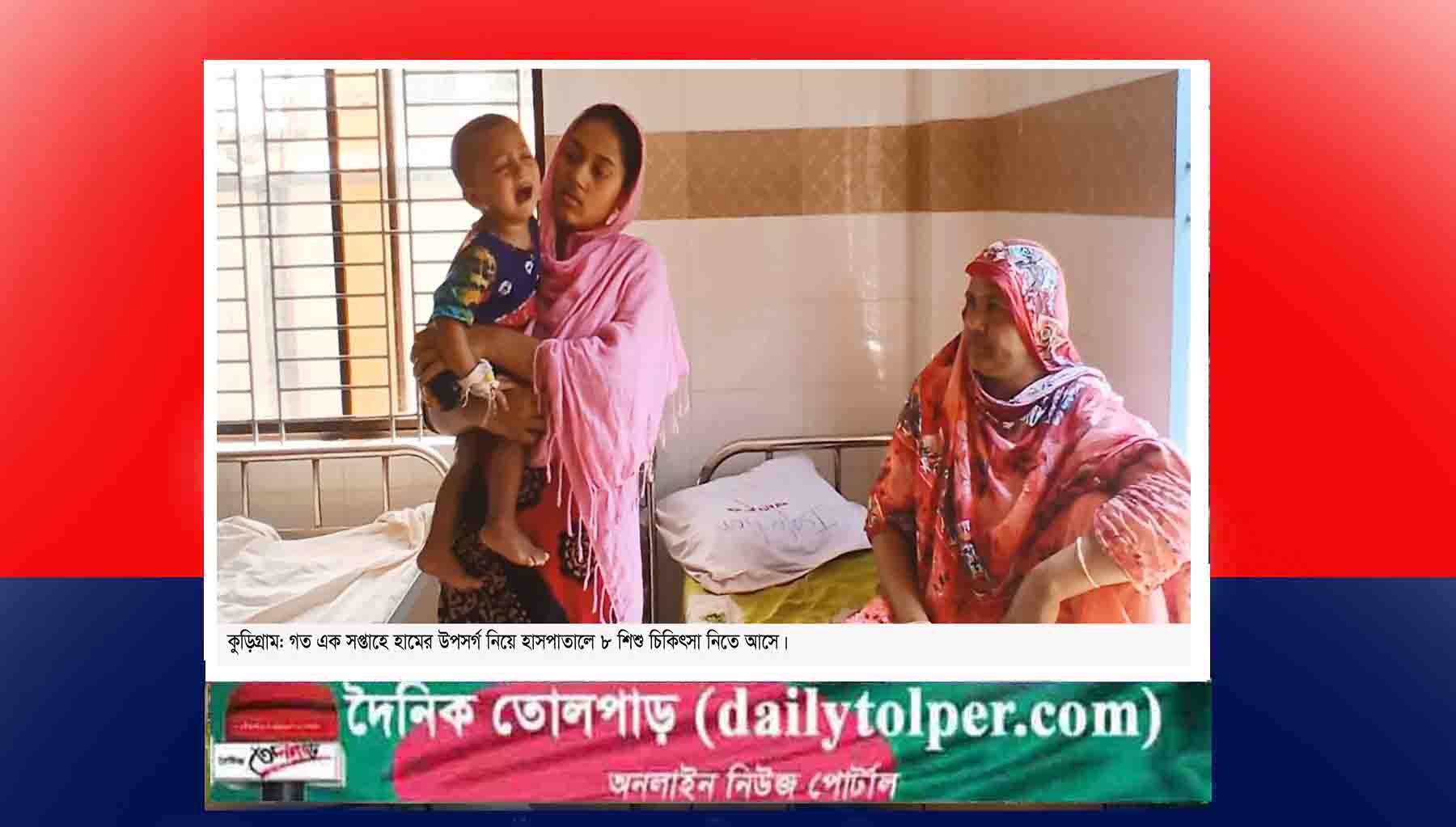 কুড়িগ্রামে গত এক সপ্তাহে ৮জন শিশু হামে আক্রান্ত হওয়ার লক্ষ্মণ নিয়ে কুড়িগ্রাম জেনারেল হাসপাতালে ভর্তি হয়েছে। আক্রান্তদের মধ্যে ৪জন জেনারেল হাসপাতালের আইসোলেশন ওয়ার্ডে চিকিৎসাধীন রয়েছে। দুই জন শিশু বাড়ীতে চিকিৎসা নিচ্ছে এবং অপর দুই শিশু সুস্থ হয়ে বাড়ি ফিরে গেছে। বিষয়টি নিশ্চিত করেছেন কুড়িগ্রাম জেনারেল হাসপাতালের তত্ত্বাবধায়ক।