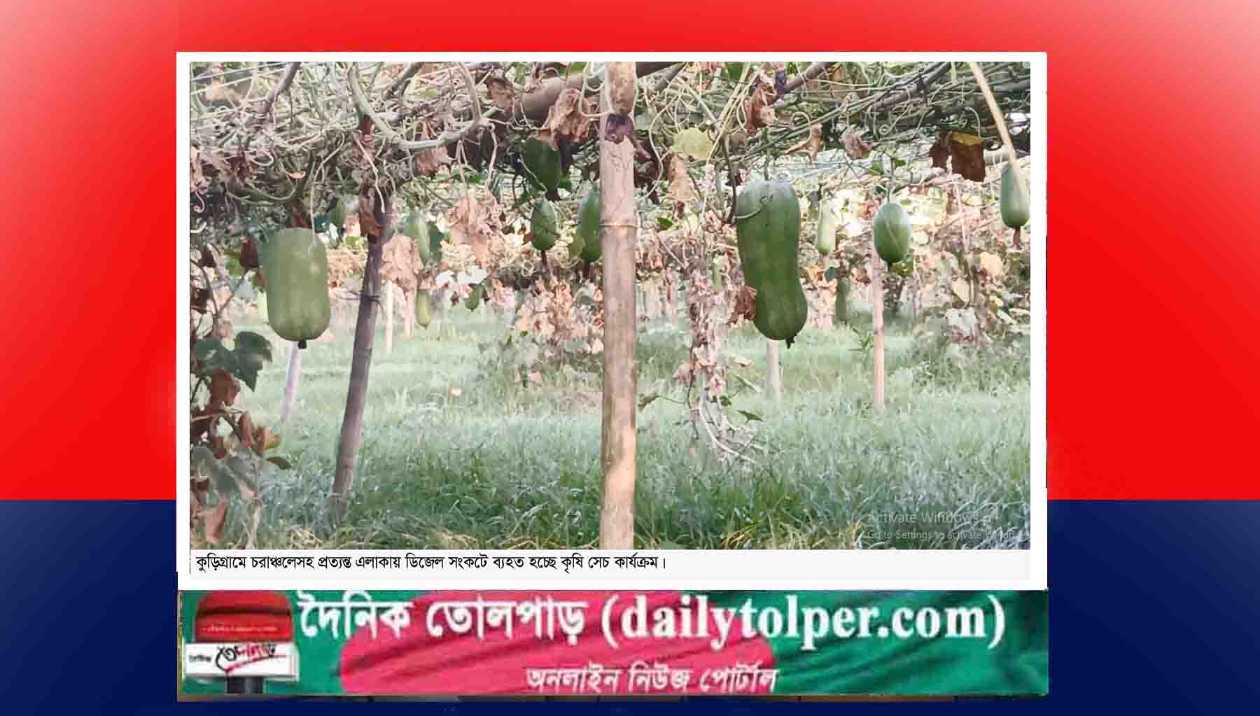 জানা গেছে, কৃষি প্রধান কুড়িগ্রাম জেলায় ১লক্ষ ৫৭ হাজার হেক্টর কৃষিজমি রয়েছে। এরমধ্যে ডিজেল চালিত সেচের আওতায় কৃষি জমি রয়েছে ৩০ হাজার হেক্টর। চলতি বছর রবিশষ্যের আওতায় পরেছে ৯ হাজার ৩৭৮ হেক্টর জমি। চরাঞ্চলসহ এসব কৃষি জমিতে চাষ করা হচ্ছে মরিচ, বেগুন, লাউ, কুমড়া, পটল, করলা, বরবটি, ঝিংগা, ঢেড়শসহ একাধিক শাকসবজি। এসব জমিতে মাঝে মধ্যে সেচ দিতে হয়। কিন্তু হাতের নাগালে ডিজেল না পাওয়ায় বিপাকে পরেছে চাষীরা। ফলে সেচ কার্যক্রম কিছুটা থমকে গেছে।