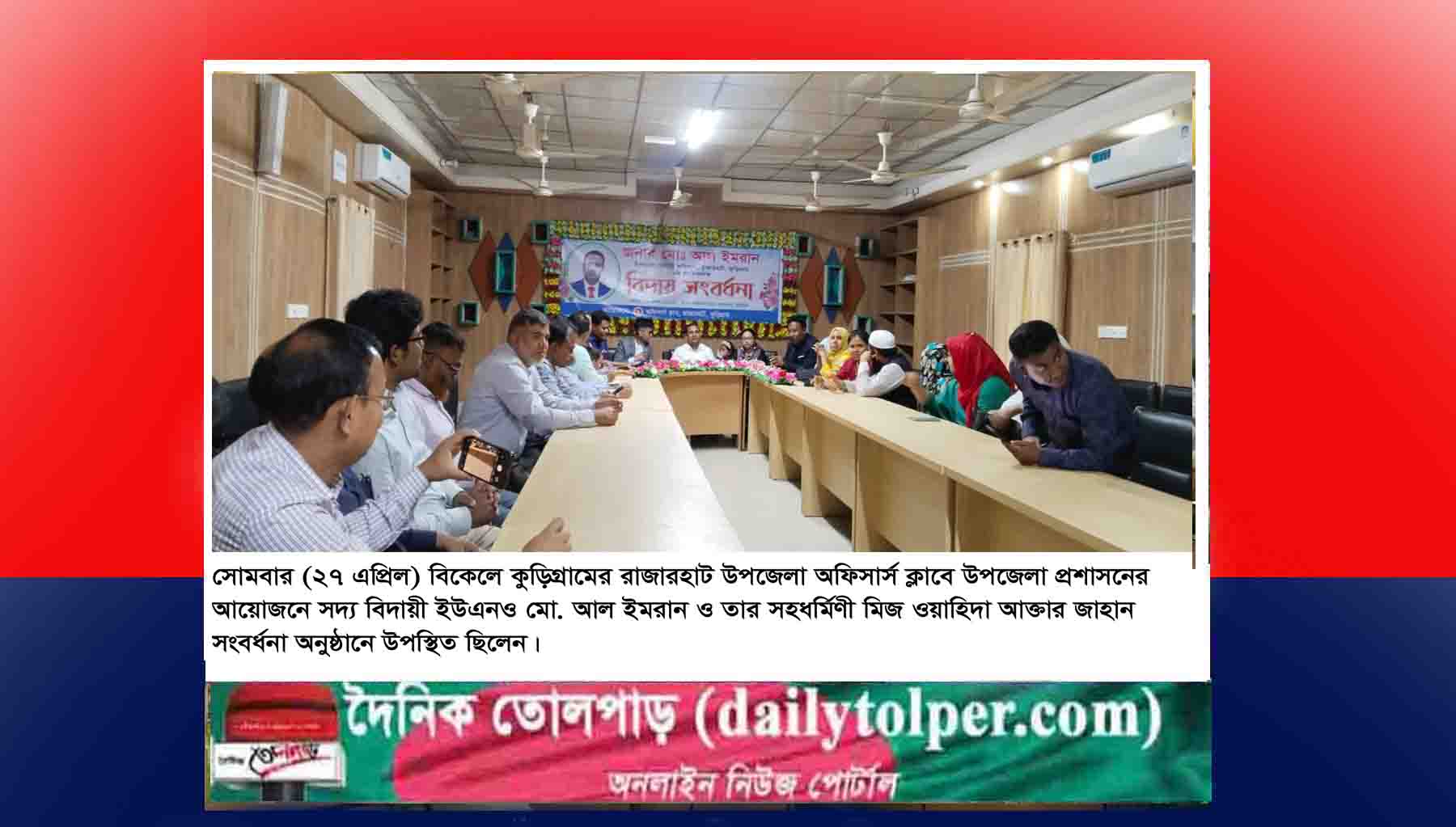 কুড়িগ্রামের রাজারহাট উপজেলায় সদ্য বিদায়ী উপজেলা নির্বাহী অফিসার (ইউএনও) মো. আল ইমরানের বিদায়ী সংবর্ধনা অনুষ্ঠিত হয়েছে।